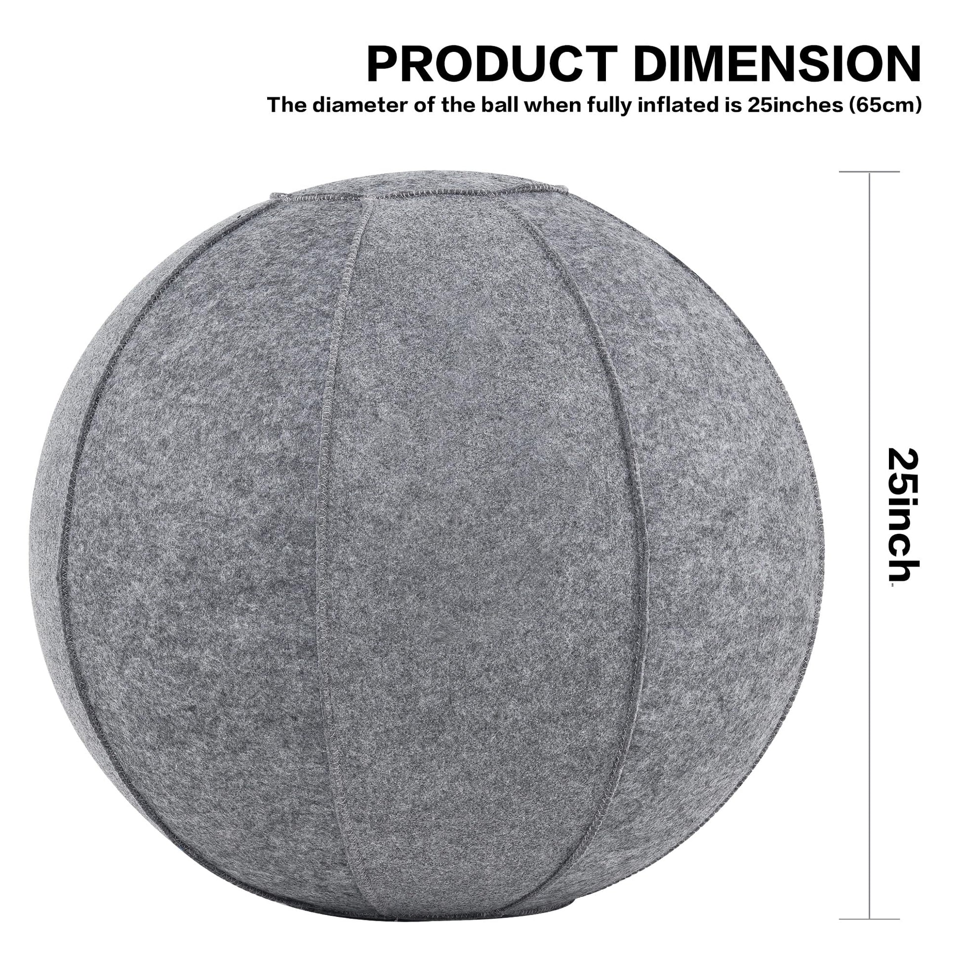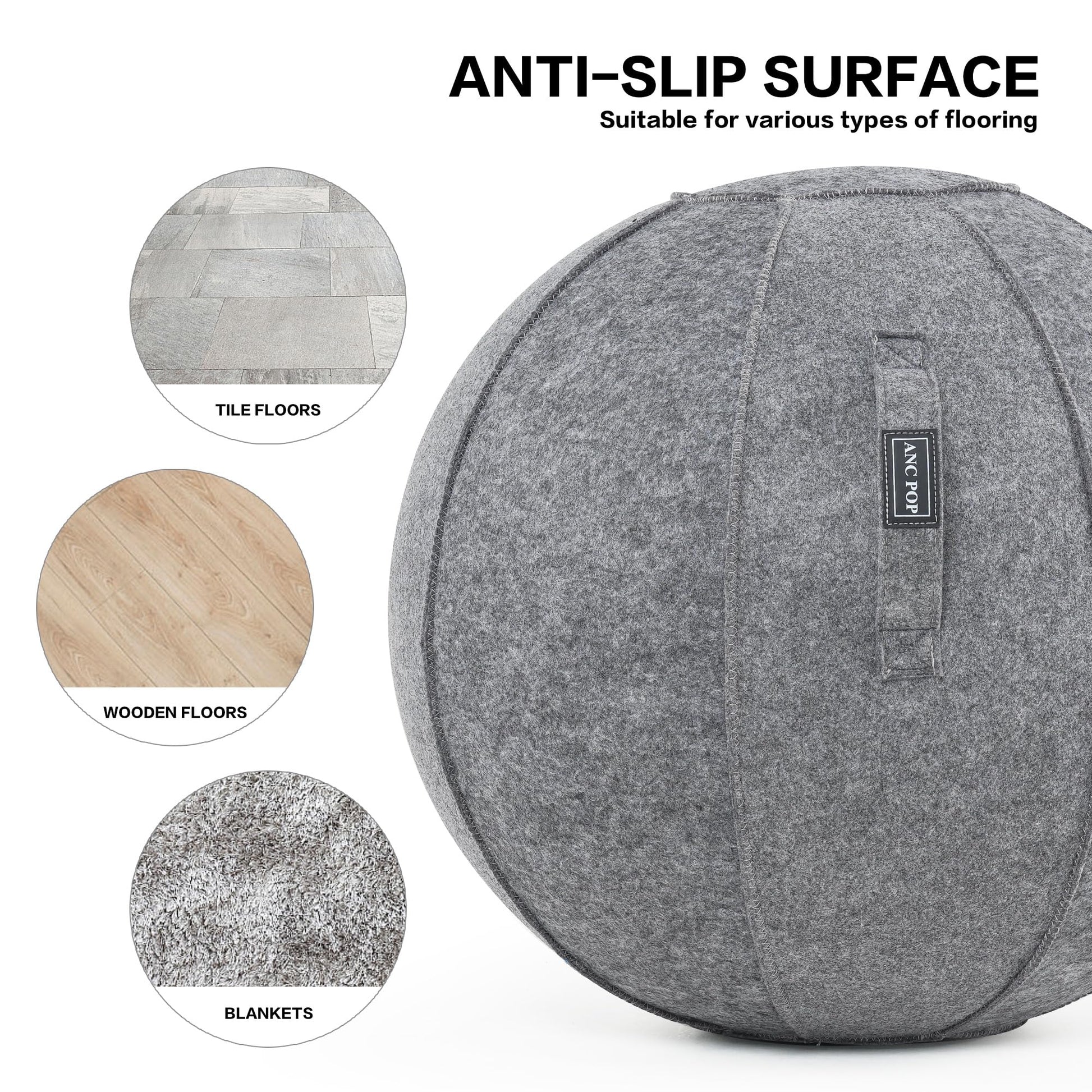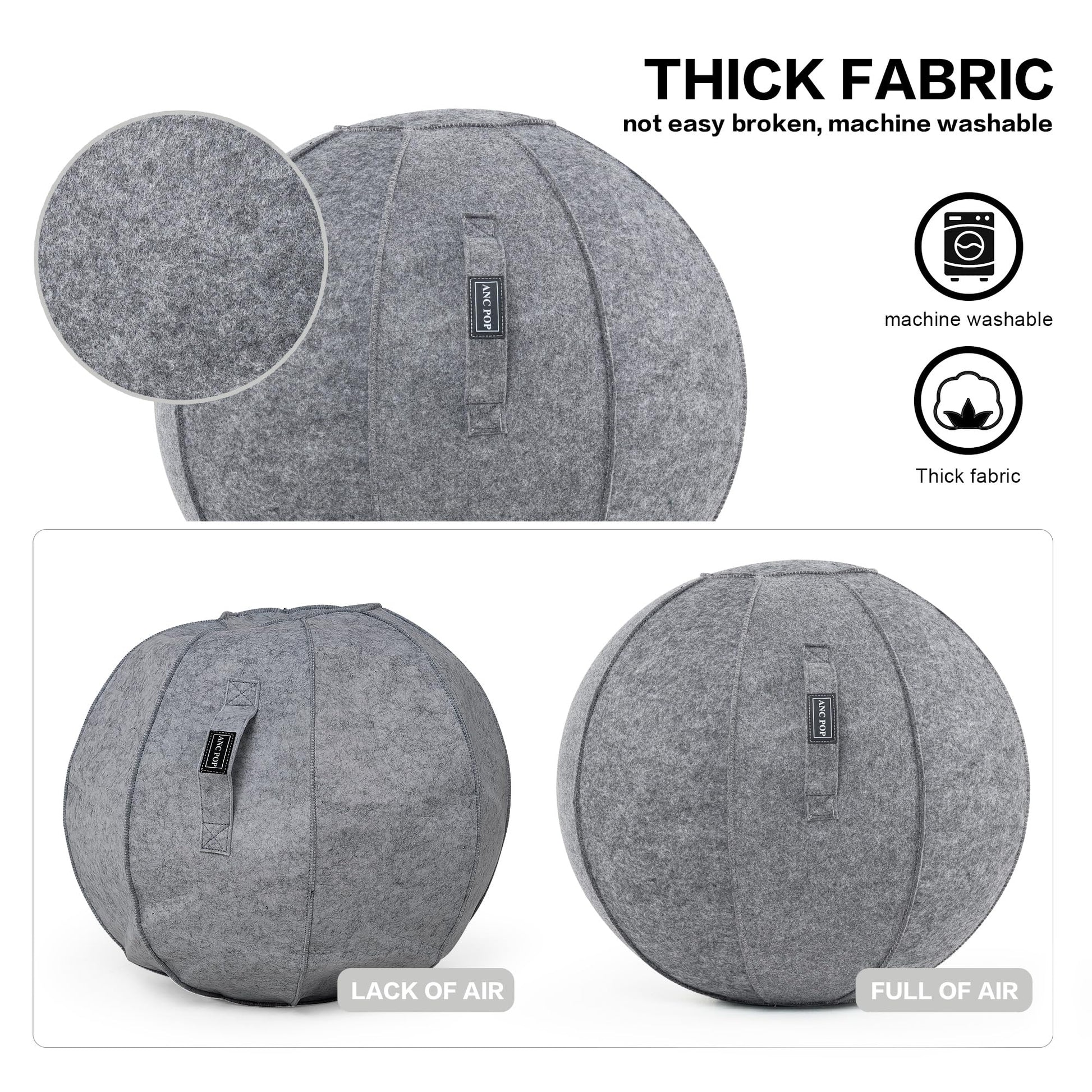 - ANTI-SLIP BALL COVER - Our yoga exercise ball has two parts: the ball and the ball cover. The ball cover is made of felt, which is safe to use on wooden floors, tiled floors and blankets. The yoga exercise ball with the cover has a non-slip effect, so it can keep balance on smooth floors and the user is not easy to fall. And the felt cover is easy to clean and can be machine washed directly.