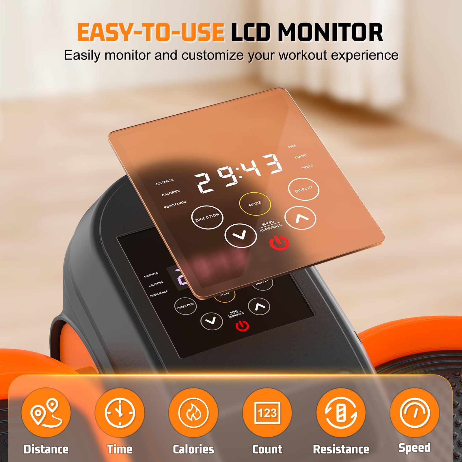 - 【LIGHTWEIGHT & COMPACT DESIGN】At only 6.7kg, this mini elliptical easily moves between home and office. Use it under desks, sofas, or beds for all-day activity. Compact build avoids clutter. Use as a seated pedal exerciser to stay active during work/TV without space compromise