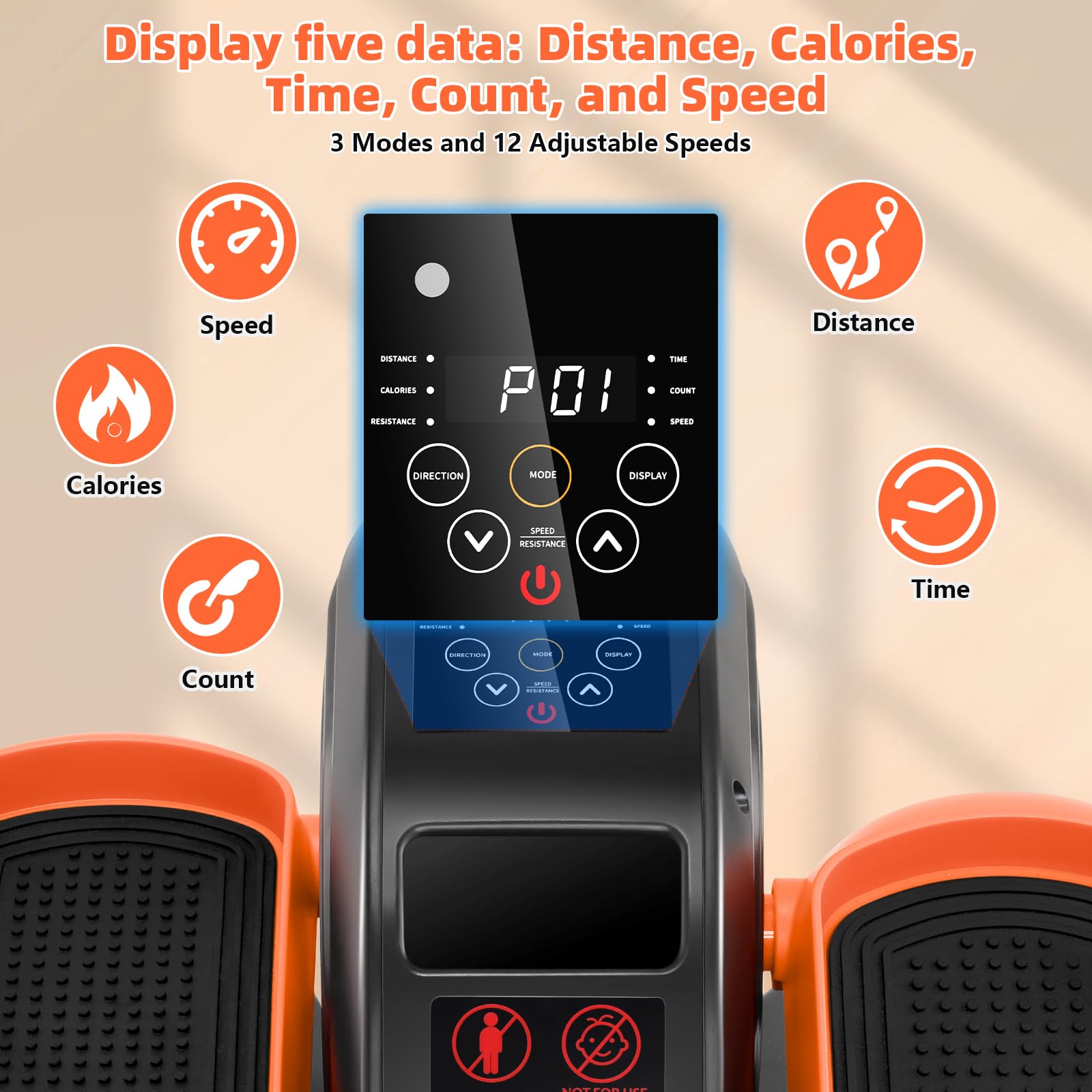 - 【Remote Control and LCD Display】The seated foot pedal exerciser comes with a remote control, allowing you to adjust settings without bending over, protecting your waist and back. The LCD screen displays real-time data on distance, time, calories burned, steps, speed, and resistance.