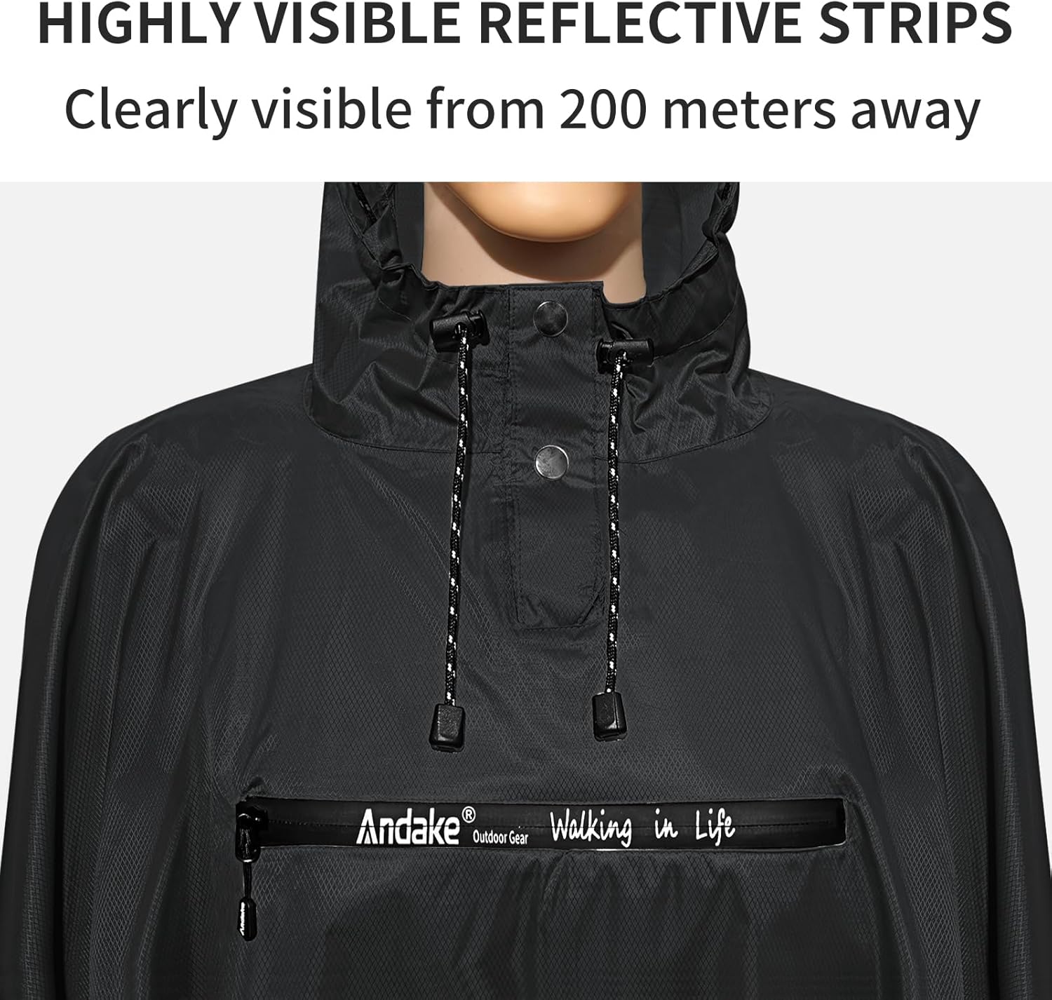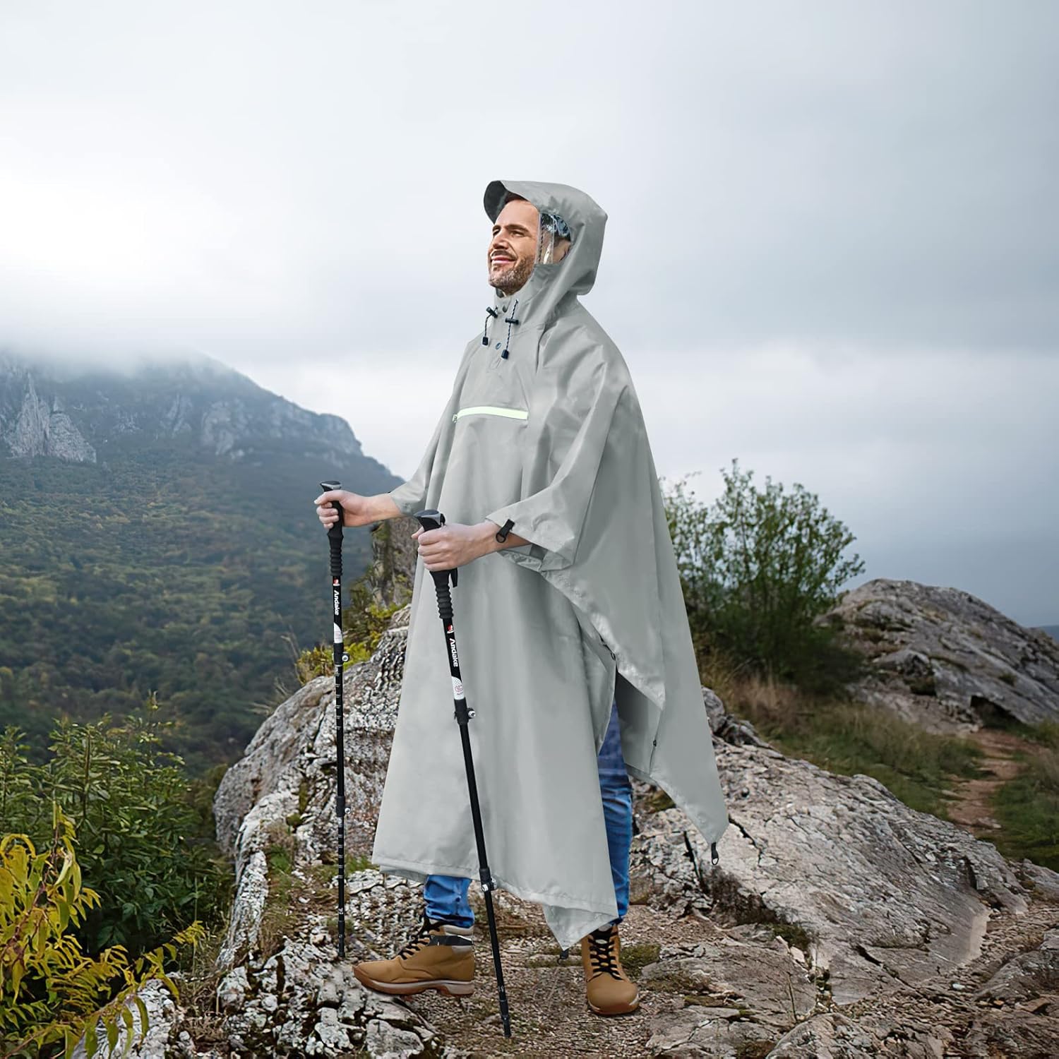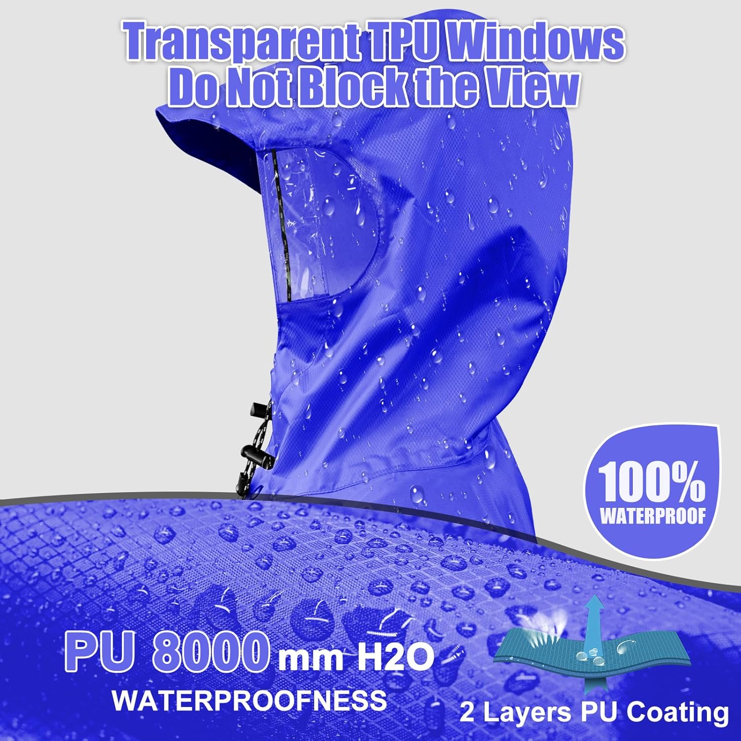 - 【TRANSPARENT TPU WINDOWS WITHOUT OBSTRUCTING VISION】The poncho hood with transparent TPU windows on both sides is a revolutionary product that provides the wearer with excellent protection from the rain while also allowing the user to see everything around them without obstruction.This gives you a perfect view to the side and additional safety in road traffic. This is particularly useful when on a hiking trail or camping in the wilderness, where visibility is key for safety and navigation.