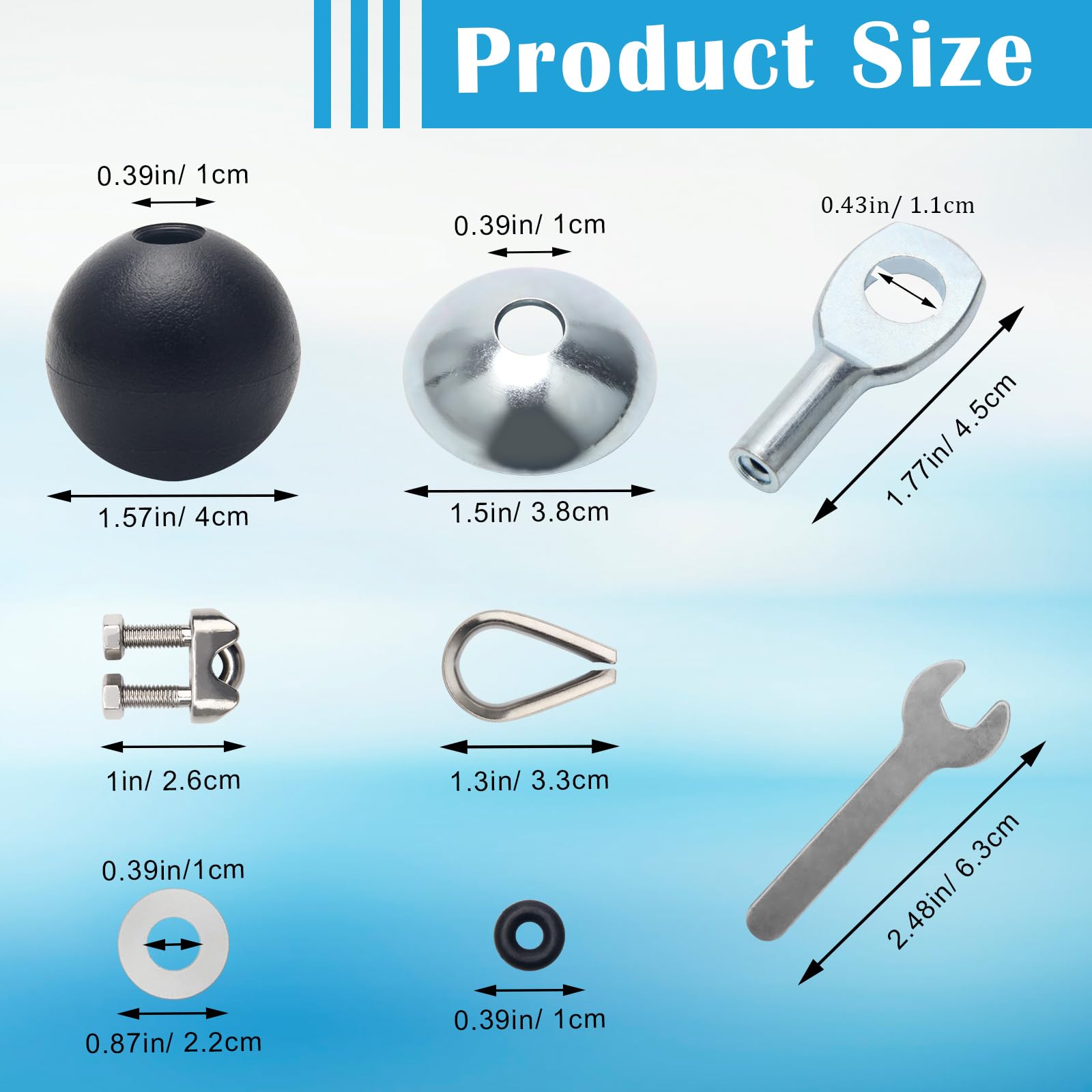 - 【Rope Attachment For Cable】: The black gravity ball has a diameter of 1.57 in and a hole diameter of 0.39 in. With bowl-shaped plates, metal eyelet terminals, spacers, and limit black rings, nested on the cable can form a stop ball to prevent the cable from shaking during fitness