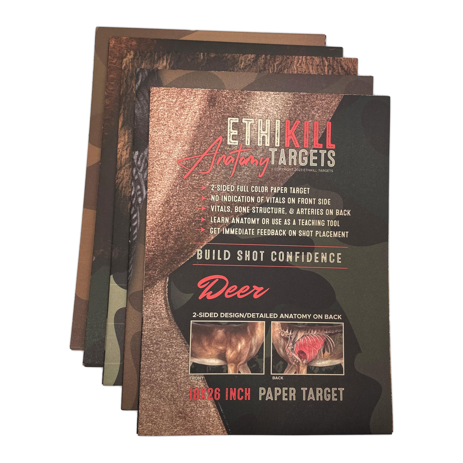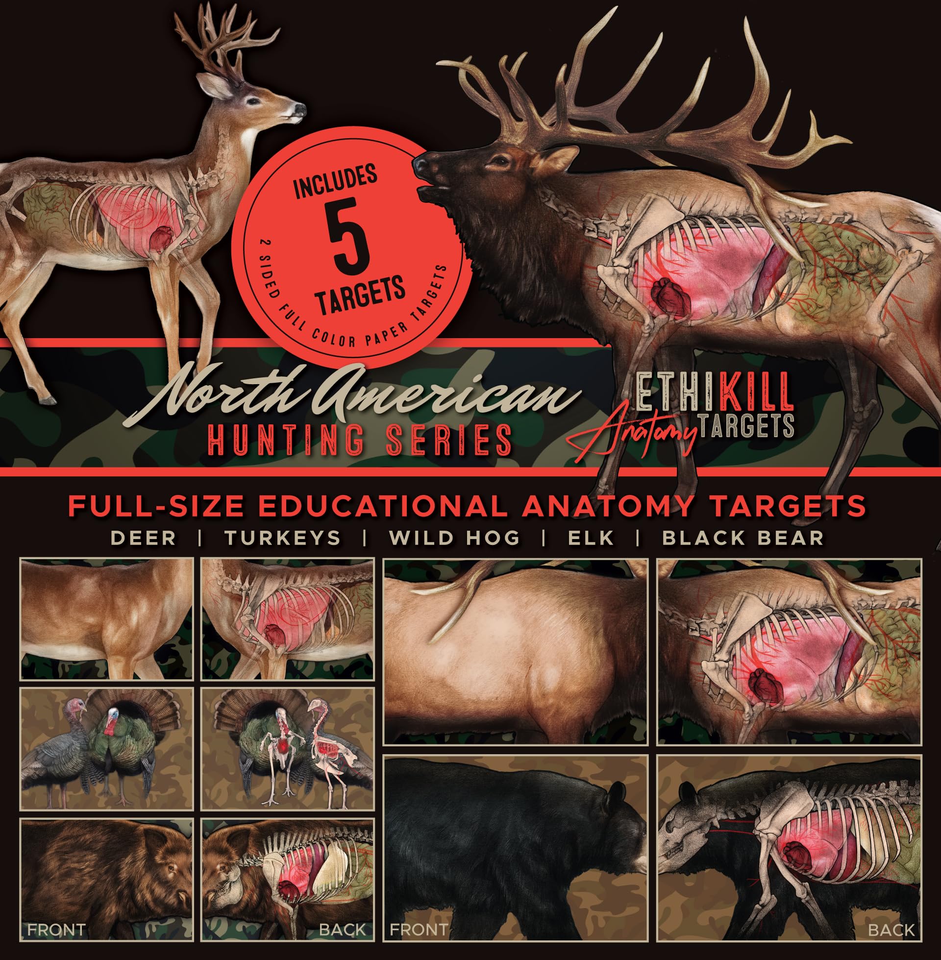 Animal Targets Featuring Deer - Hog - Turkey - Elk - Black Bear. 2-Sided Full Size Paper Range Targets for Archery & Rifle Hunters - Realistic Anatomy Illustrations by EthiKill (5 Pack)…