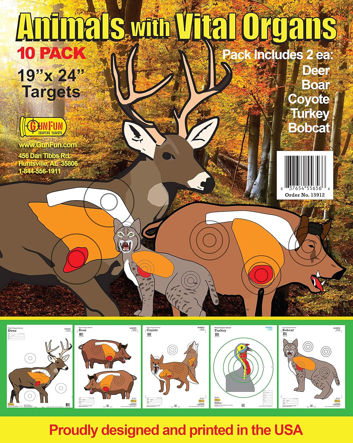 - Includes TWO of each target: Deer, Boar, Coyote, Turkey & Bobcat.