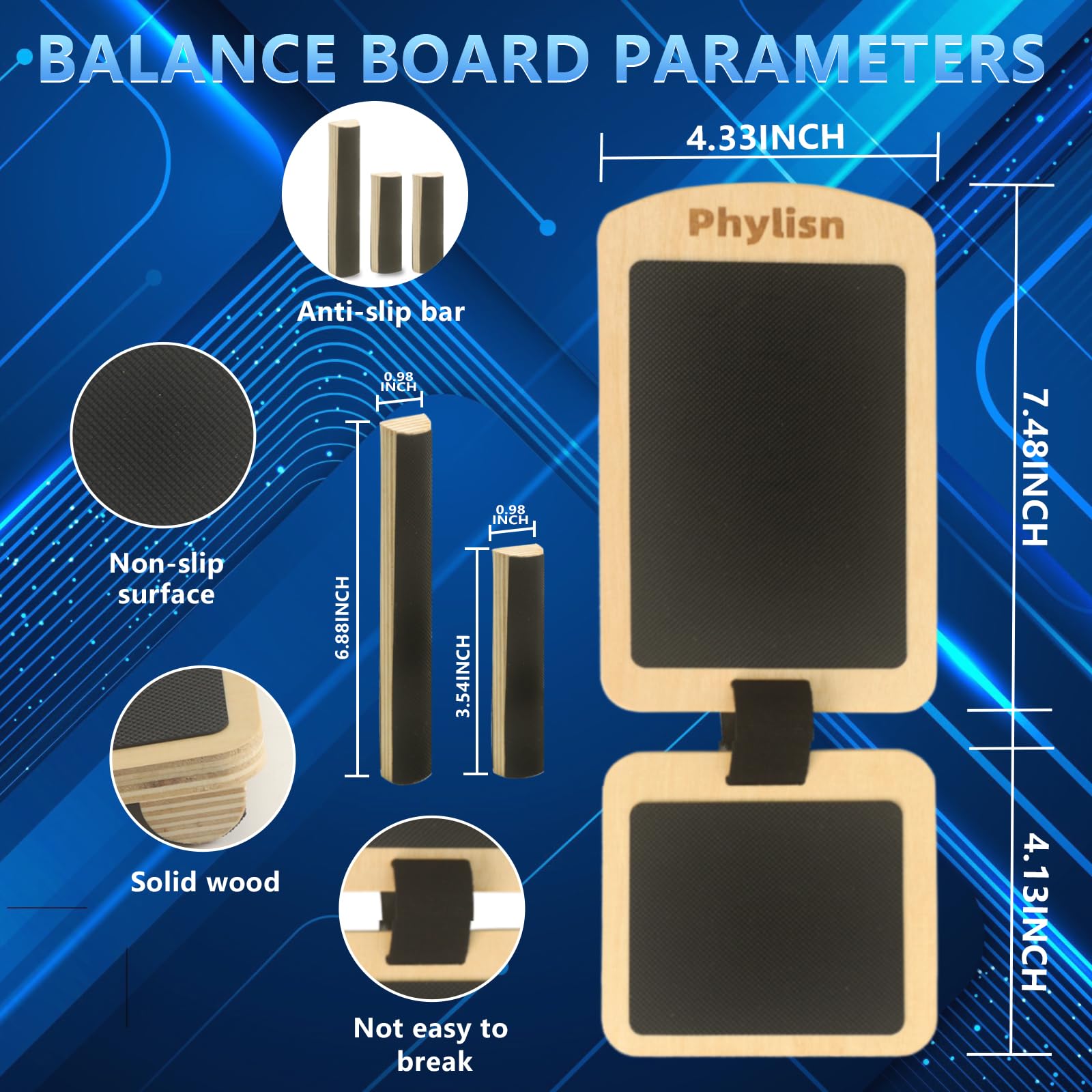 - Product specifications: Our balance board dimensions: 11.23 inches long x 4.33 inches wide x 1.37 inches high. Weighs only 300 grams. It consists of two removable plates and three nylon balance rods, connected with Velcro. No matter your weight or foot width, you can use our training equipment.