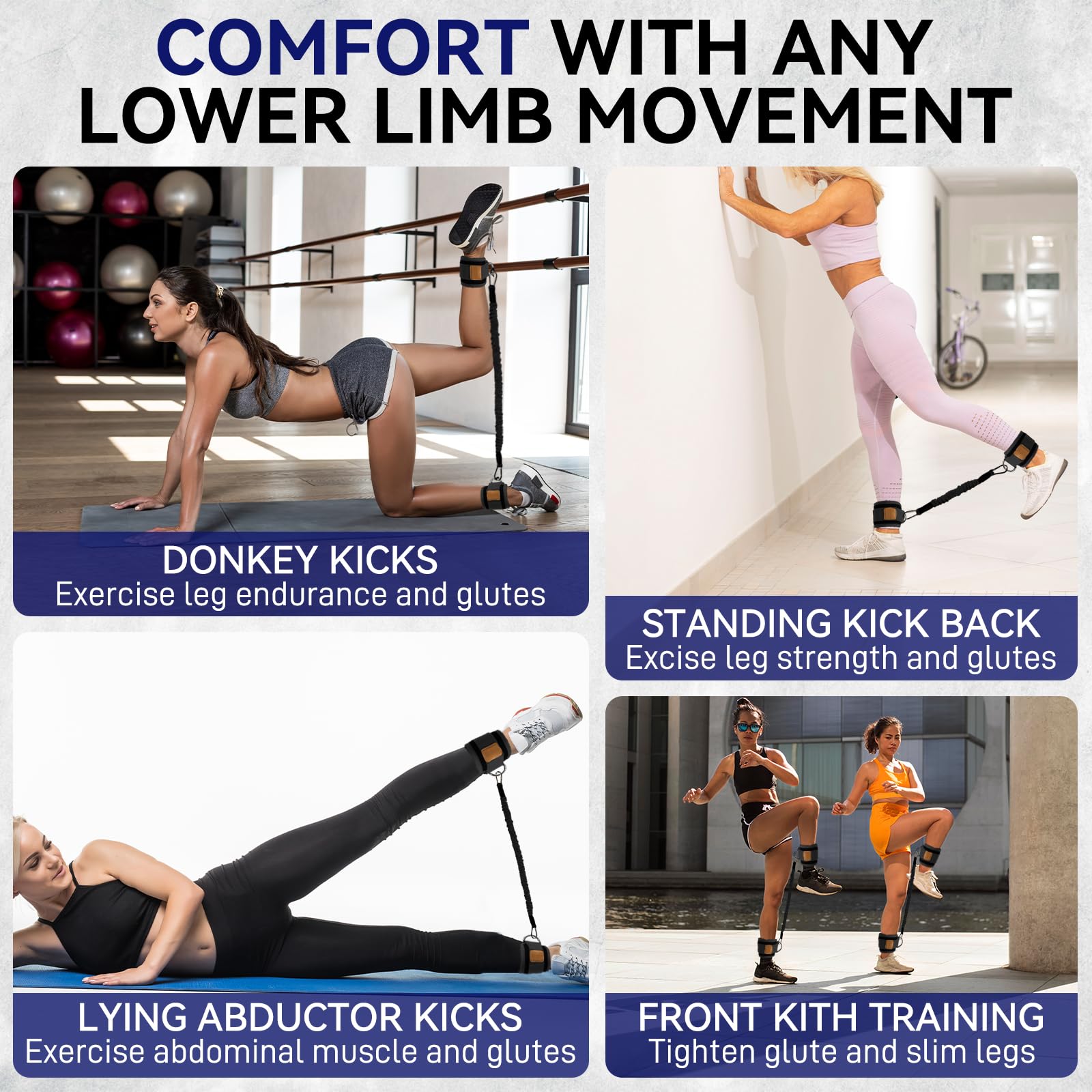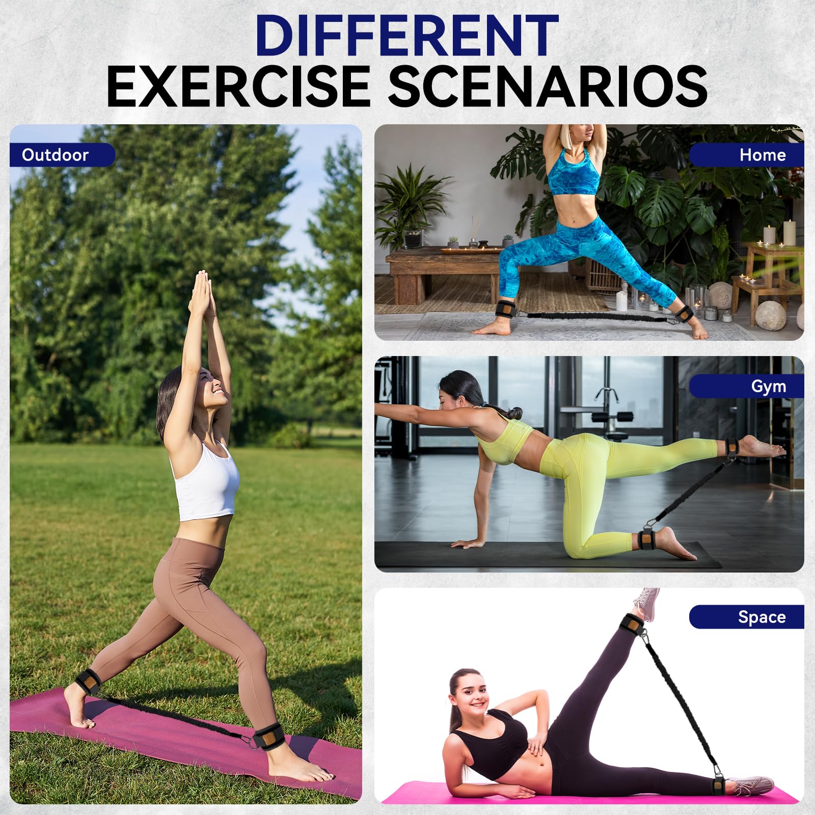 Ankle Resistance Bands with Cuffs Leg Strength Bands for Women Glutes Hip Building Exercise Bands for Working Out Fitness Yoga Martial Arts Ankle Straps for Butt Lift Exercise Equipment