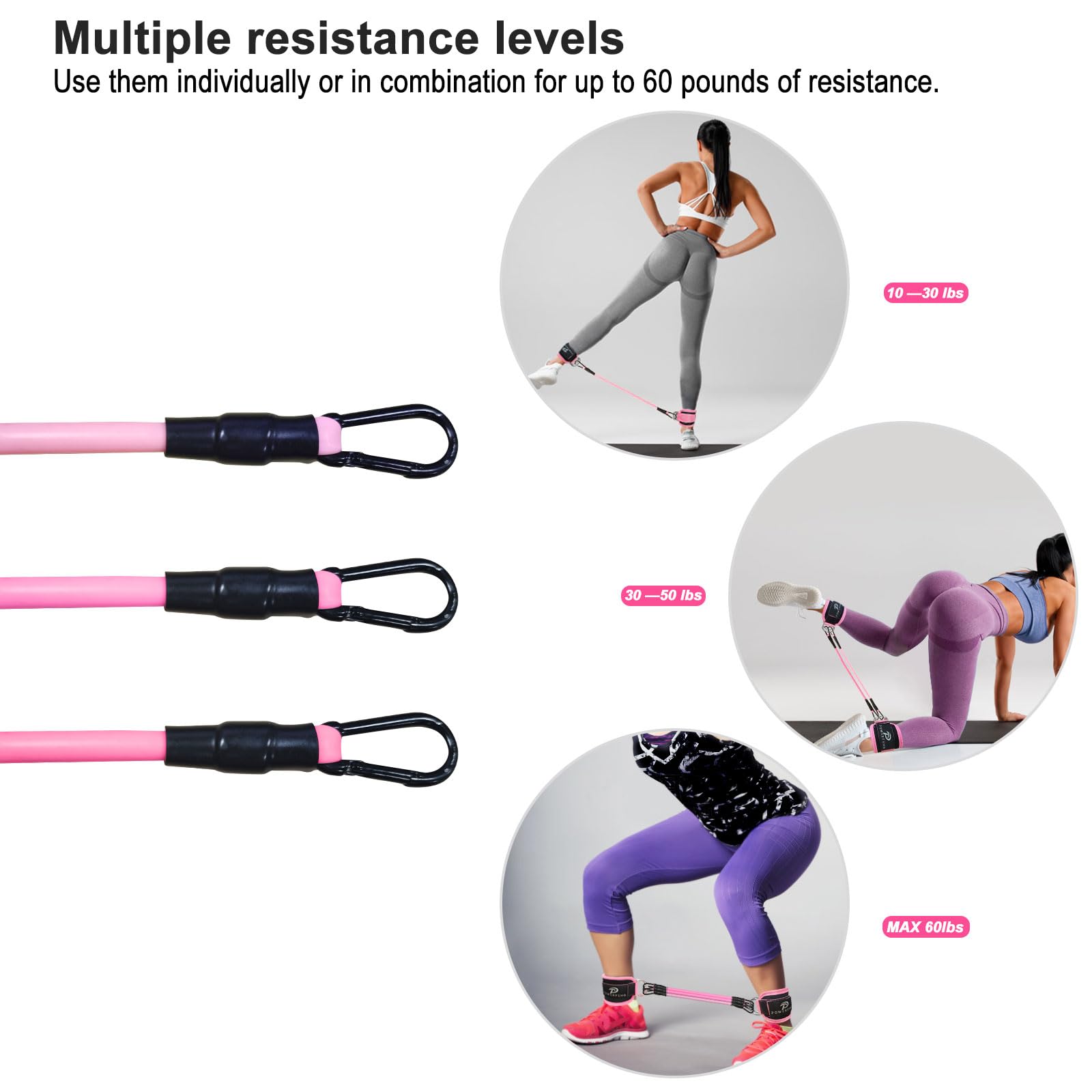 Ankle Resistance Bands with Cuffs: Women Ankle Strap Band for Working Out - Ankle Resistance Bands for Glutes Hip & Leg Butt Training Workout Exercise Equipment