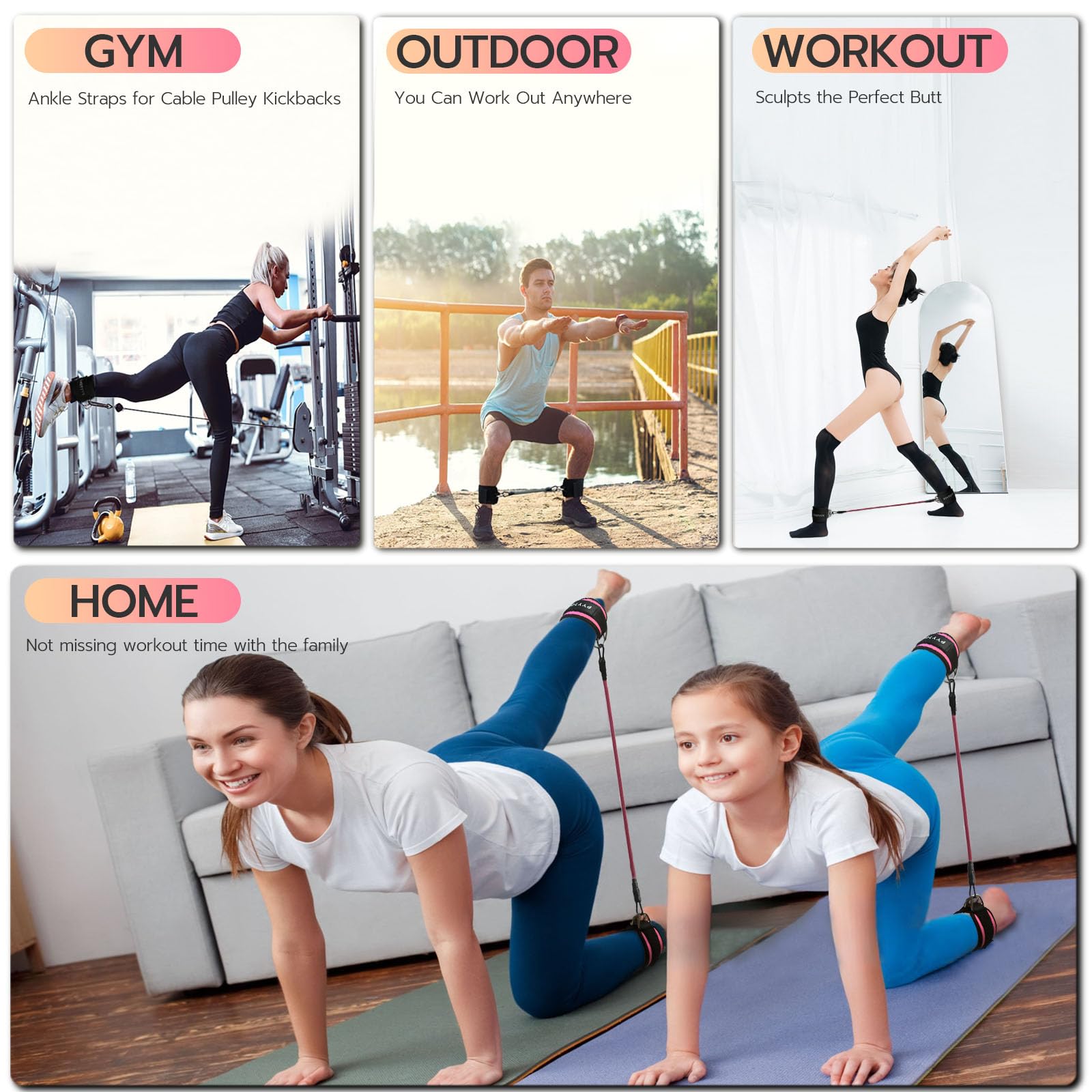Ankle Resistance Bands with Cuffs, Women Workout for Home Gym, Glutes Exercise at Home, Ankle Strap for Cable Machines Women, Shaping The Perfect Butt. (Ankle Resistance Bands with Cuffs, Pink)