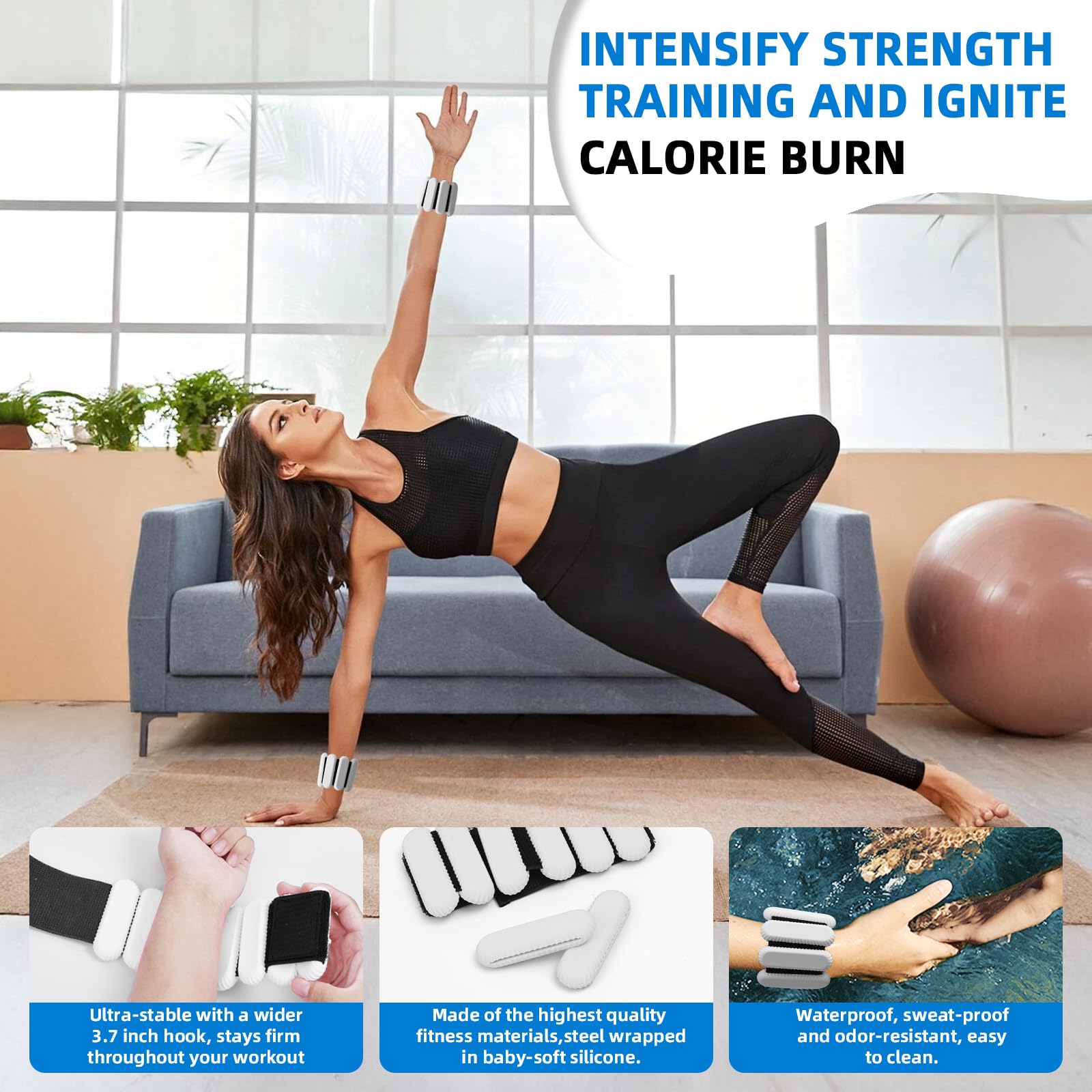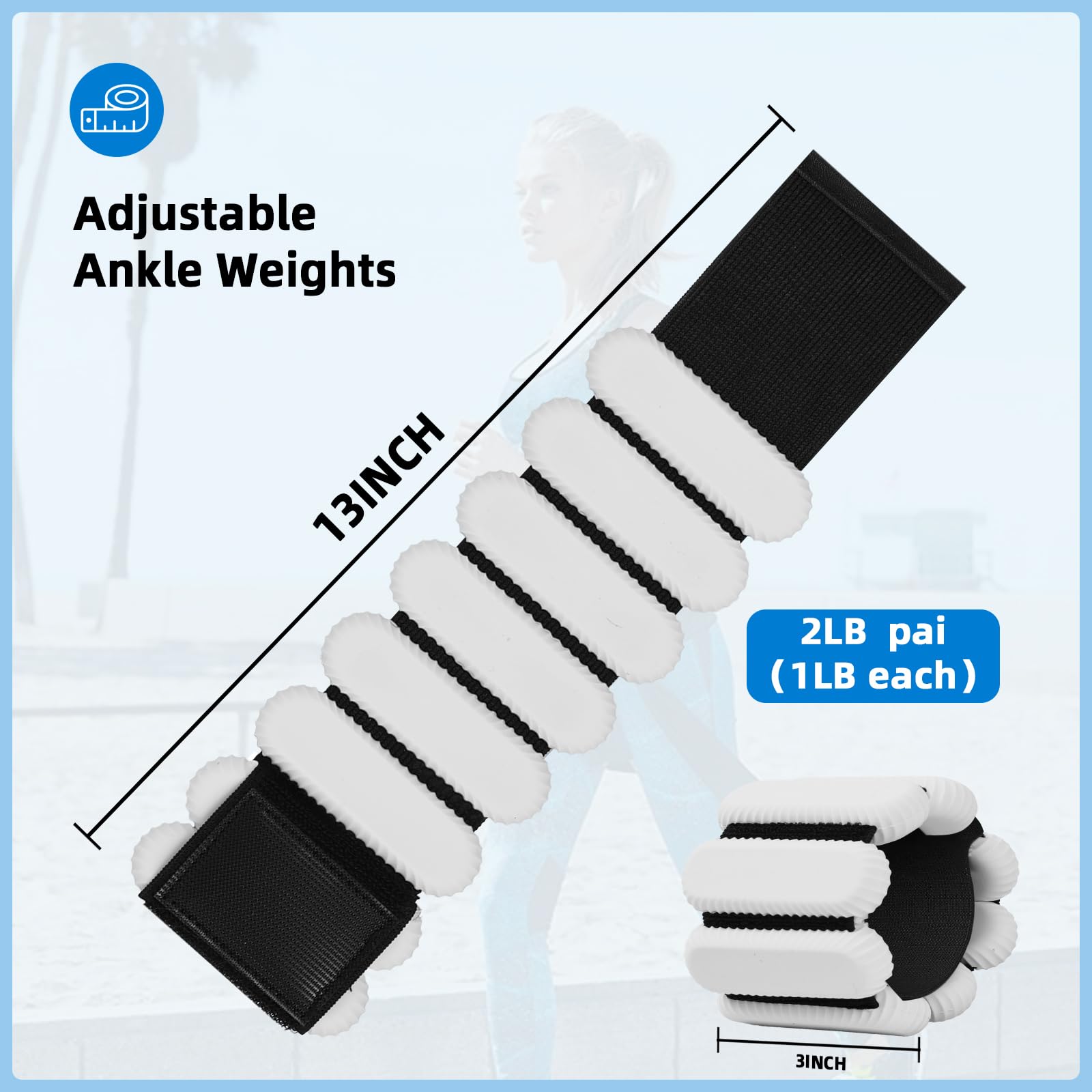 - PRODUCT PARAMETERS:: Ankle weights set include 2 adjustable silicone weight bracelets, 1 LB each.Add consistent, comfortable hands-free resistance. Versatile weighted wristbands blend seamlessly into fitness routine, enhancing your workouts.