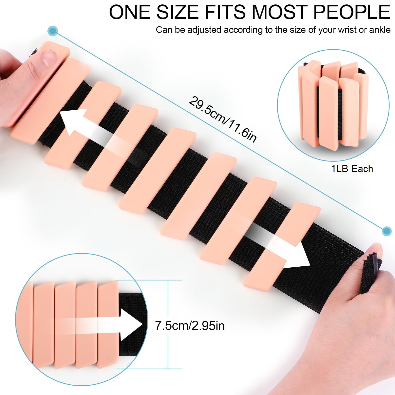 Ankle & Wrist Weights for Women Kids Men - Adjustable Silicone Ankle Weights Set of 2 (1Lb Each), Wearable Arm & Leg Workout Weights Set for Yoga Dance Pilates Cardio Aerobics Walking (Light Pink)