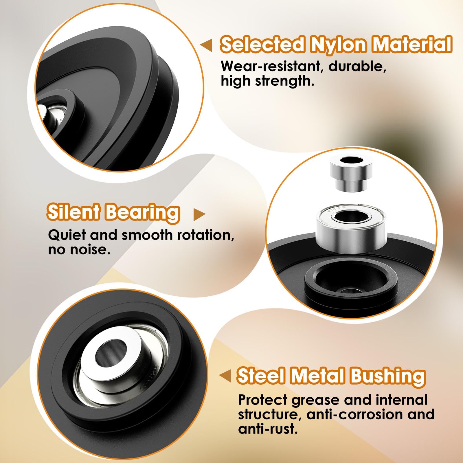 - Precision Bearing, Smooth and Silent: Built-in highly-precise metal bearings, metal bushings are not easy to corrode and rust, smooth and soundless operation, and the gym pulleys roll as smooth as silk, adding a sense of serenity and concentration to your fitness experience
