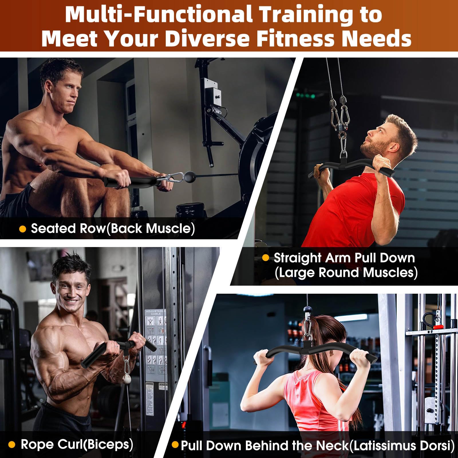 - Widely Used by Crowd: The cable curl bar is suitable for fitness enthusiasts who want to build muscle, sedentary office workers and those who want to improve their physique, working out with this pulldown bar helps to relieve tension and stiffness in the back muscles, allowing men to have a broad back and women to have a straight posture