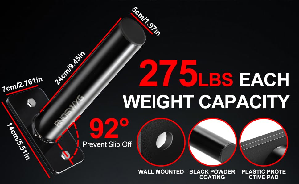 - Weight Plate Storage Rack for Home Gym - Wall-Mounted Bumper Plate Holder with Heavy Duty Steel · High Capacity Storage: Designed to hold multiple weight plates securely, perfect for organizing your home gym. · Tilted Plate Holder: Slight 2° tilt prevents plates from sliding off, keeping them safely stored. · Durable & Scratch-Resistant: High-quality steel with a protective hard-coat finish. · Universal Fit: Fits all 2" Olympic weight plates, with included installation hardware for both wood and concrete walls. · Impact Protection: Foam padding reduces wear and tear on plates and the rack.