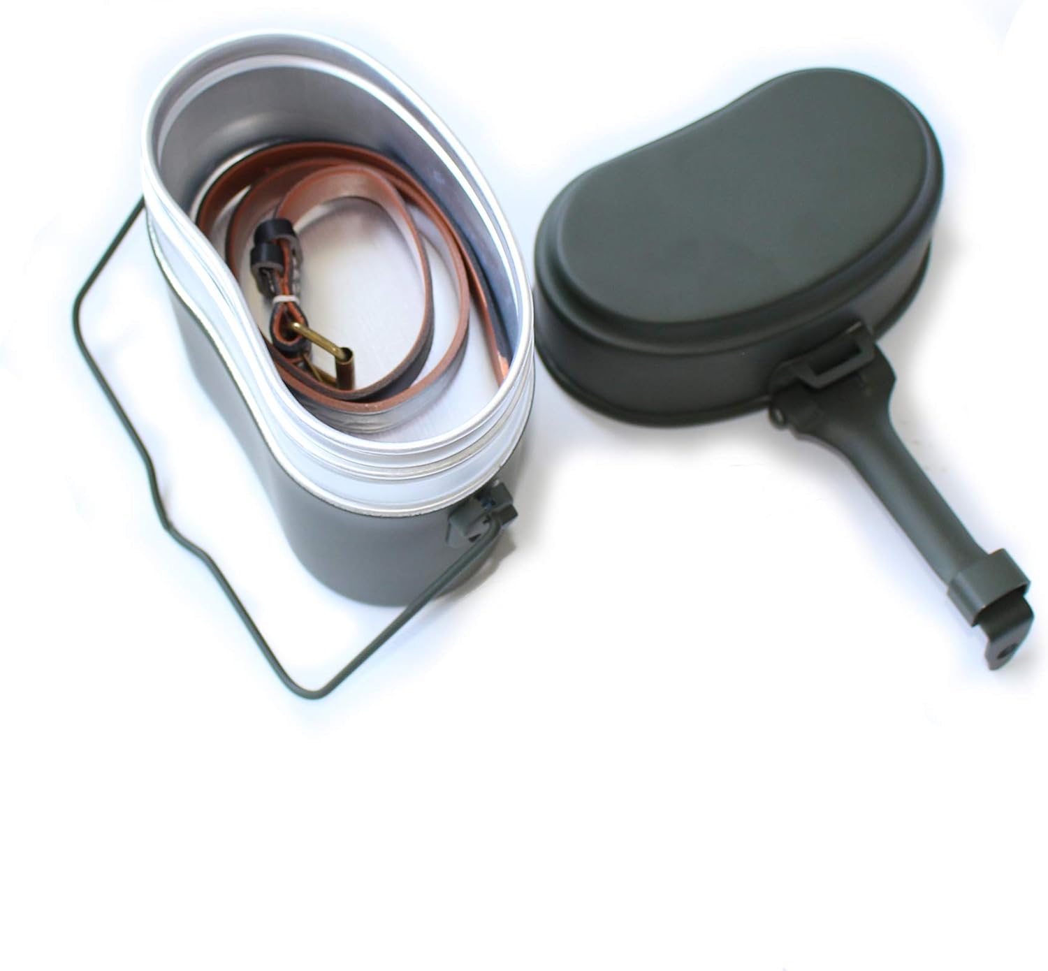 ANQIAOGreen Collectibles WWII WW2 German M31 Mess Kit Tin with Leather Strap Dinner Box 3 Parts in 1