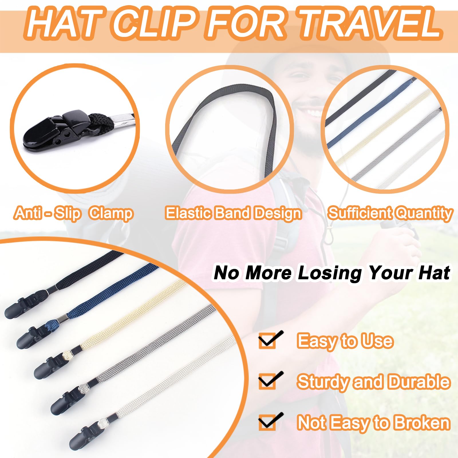 - Alligator Clip Design - Each hat chin strap attached with clips at both ends. The alligator clip can firmly fix your hat on your shirt, jacket or backpack, so you don't have to worry about moving your hat anymore.