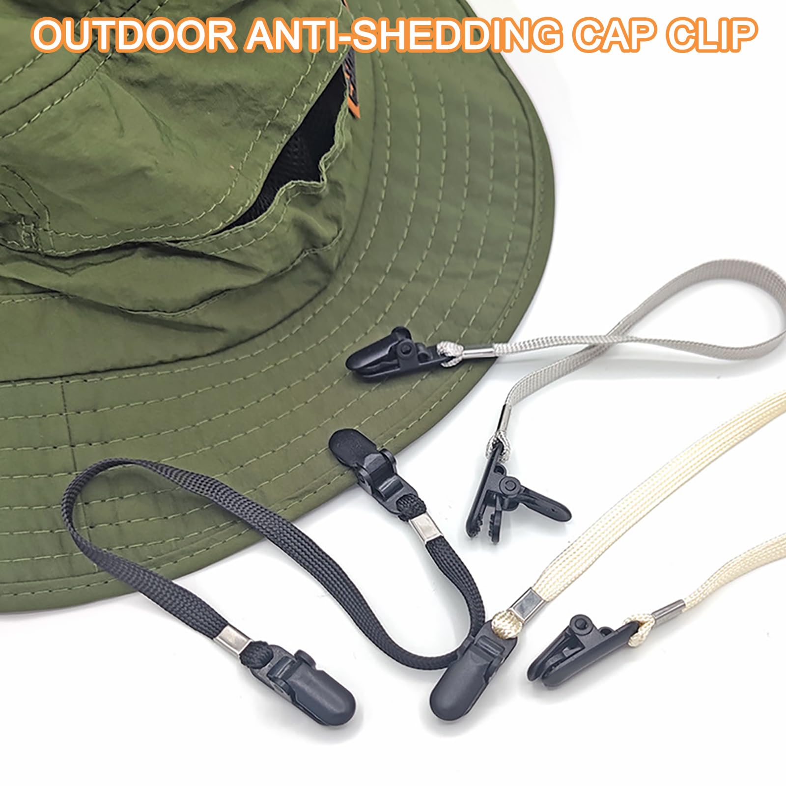 Package includes: 5 x Adjustable hat strap clips