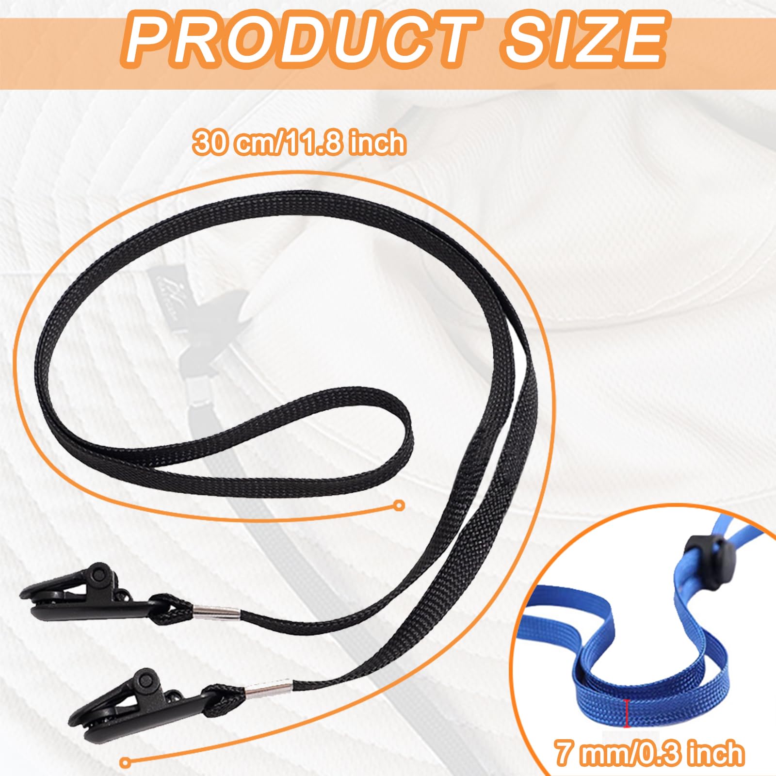 Our hat strap clips are great for windy days and sports activities to protect your hat from blowing away or displacing; and also can be used as napkin clip, neck strap, bib clips, adjustable mask ear protector savers, lanyard hang around your neck to attach your glasses or gloves and free your hands.