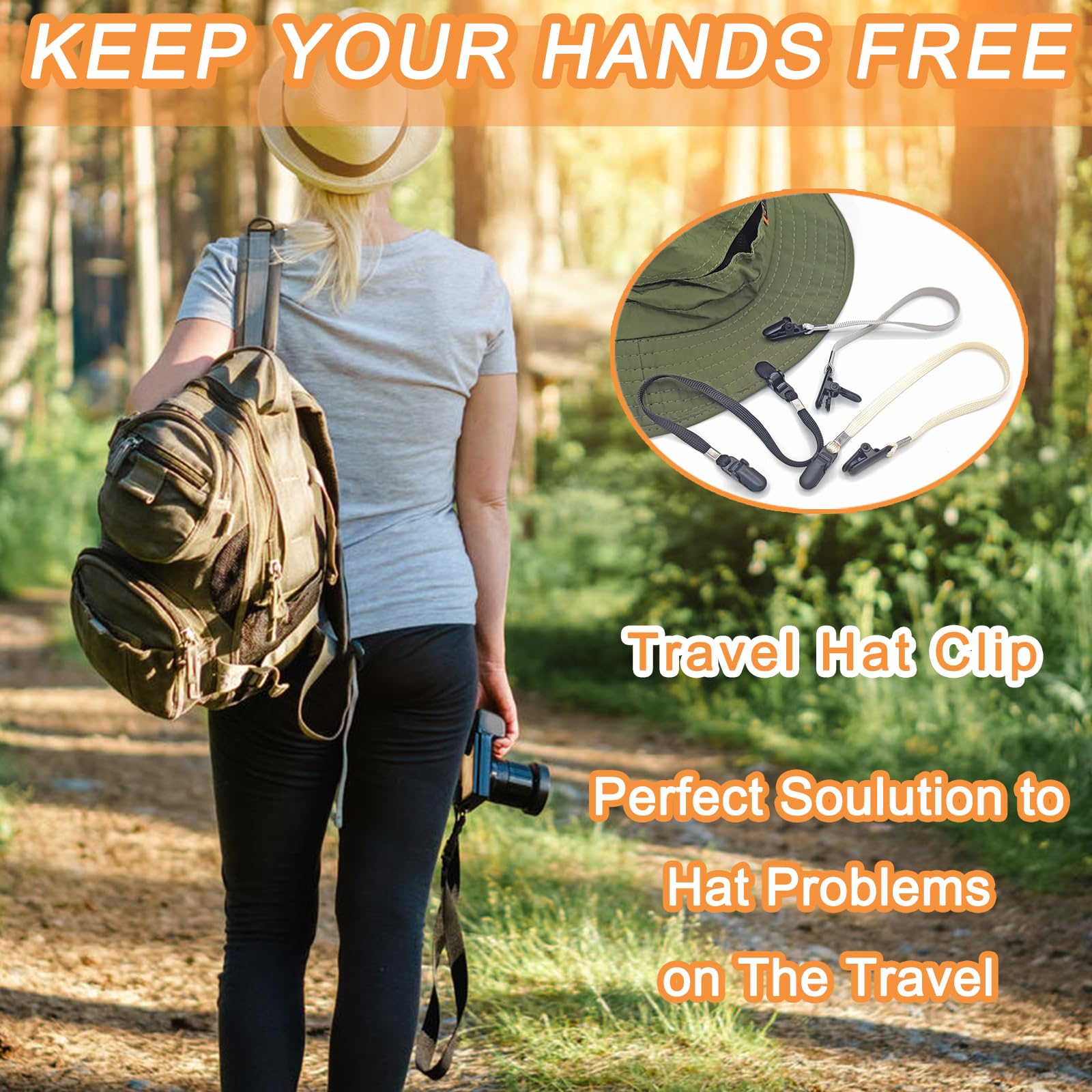 You do not need to use your hands to hold your hats when you are traveling, just connect your hat to your bag, luggage, suitcase with our hat strap clips, making your road trip become relaxed and cool.