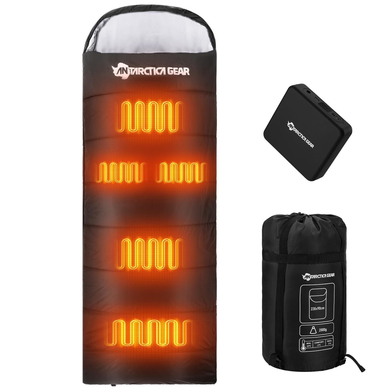 Antarctica Gear Heated Sleeping Bag, 5pcs Heating Areas Sleeping Bags with 16000mAh 12V Battery Pack, 3 Adjustable Heating Levels Cold Weather Sleeping Bag for All Season Hiking & Camping