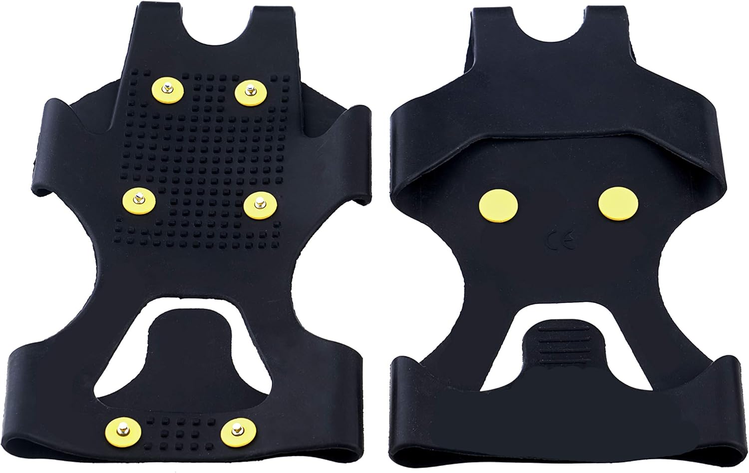 ANTI-SLIP PROTECTION: The steel studs prevent from slipping and falling. It provides absolute stability, support, and balance. LIGHTWEIGHT AND DURABLE: The snow & ice cleats are made of strong, long-lasting rubber material. It is light on your feet for utmost comfortability. EASY TO USE: The cleats are simple to slip on and off your shoes, boots, sneakers, etc. It folds compact to fit in your pockets. MULTIPLE SIZES: Available in small, medium, large, and x-large for men women and kids shoe sizes. MULTI-PURPOSE USE: Great for walking on snow, ice fishing, hunting, mountain climbing, mud walking, snow shoveling, running on ice, rock climbing, and all outdoor sports. This superio snow and ice cleats provides absolute stability, support, and balance when walking on snow or ice, etc. they are very simple to slip on and off your shoes…, it is made of long-lasting rubber material and will for sure have a long lifespan. It is available in many sizes for men, women, and kids.