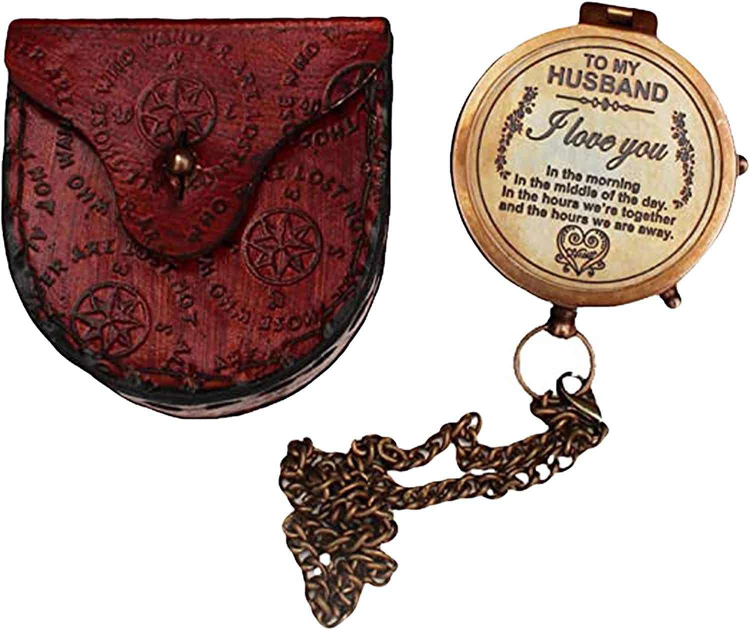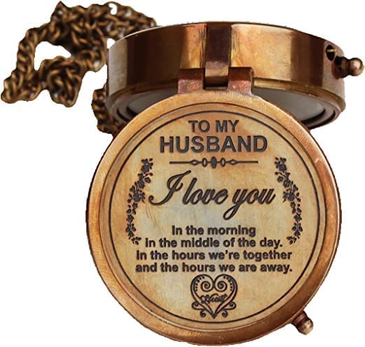 Antique Nautical Brass Engraved Pocket Compass Navigational Compass Tool for Travelling & Camping by THEHISTORICALHUB (to My Husband I Love You)