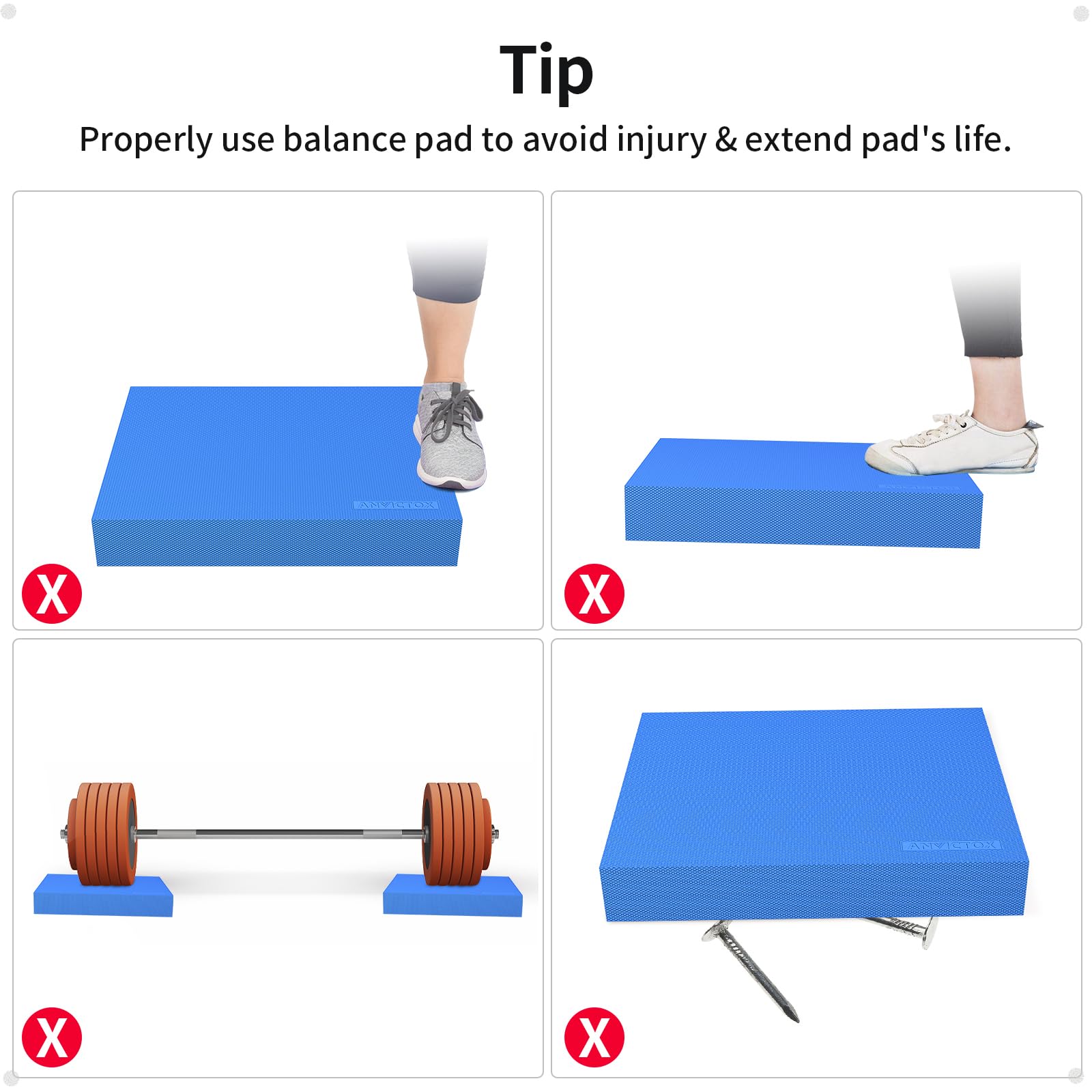 - [Warm Tips]During training, it is important to avoid placing your feet on the edges of the square balance pad as this can lead to loss of stability and potential injury. Additionally, frequent placement of feet on the edges can cause damage to the pad, reducing its lifespan. Therefore, it is essential to use the pad correctly to avoid these potential risks