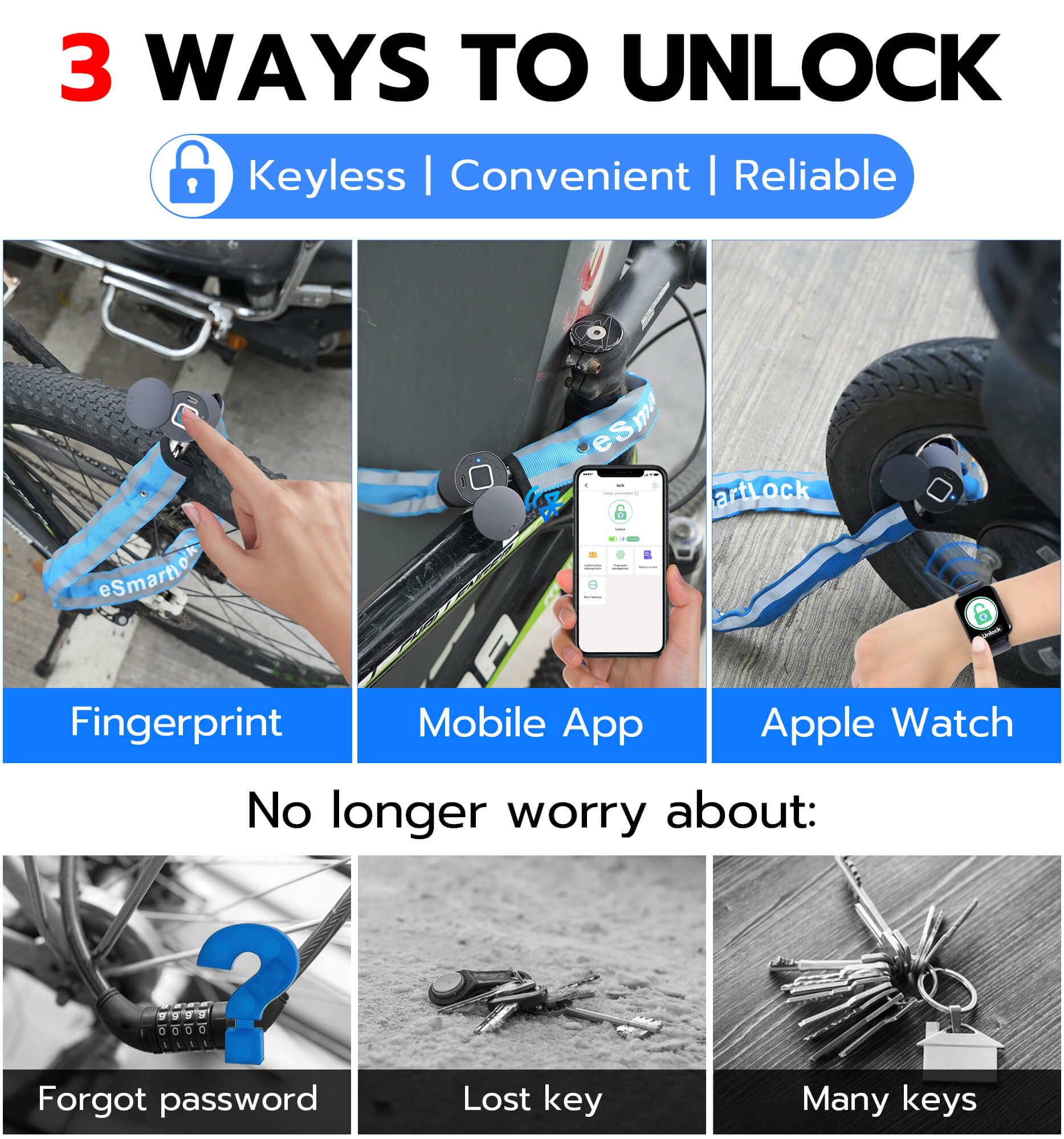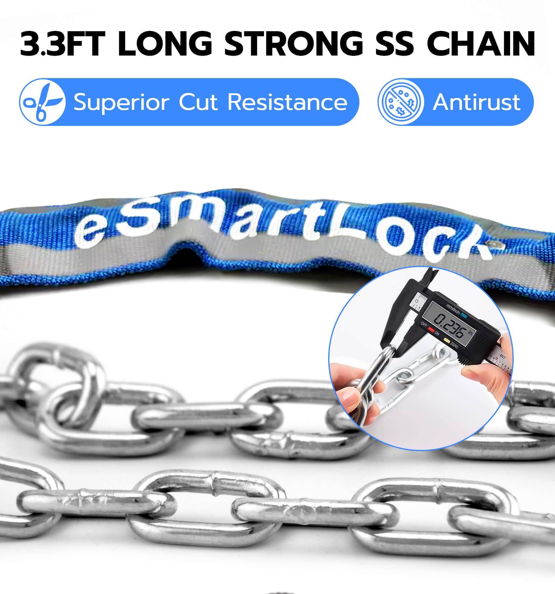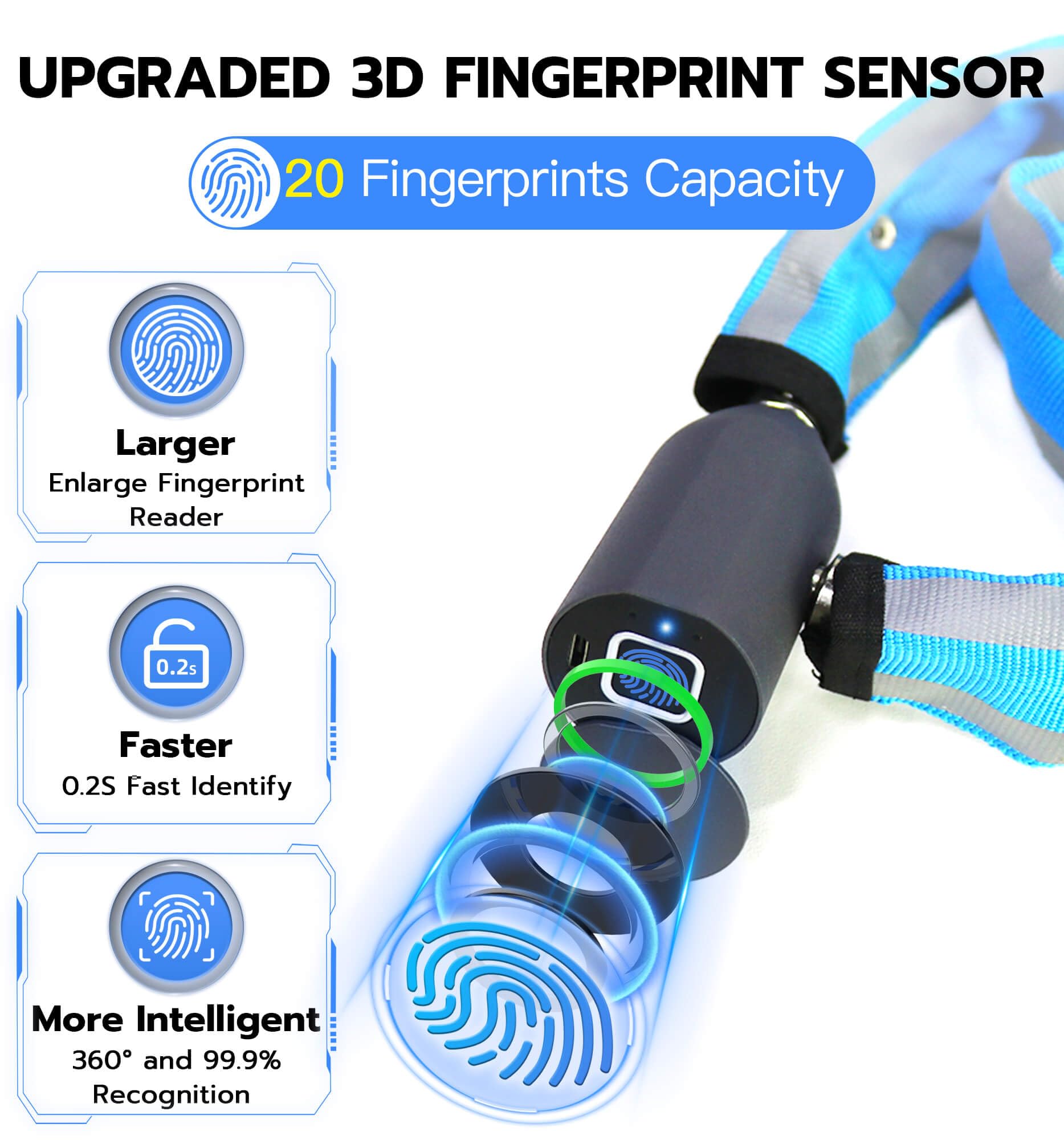 - 🔐【FINGERPRINT UNLOCK】: Fingerprint chain lock uses advanced biometric technology, touch your finger to fingerprint unlock within 0.2 seconds, the unlocking speed is much faster than ordinary rope locks and key locks. Your finger is the key, no longer worry about losing the key or forgetting the password.