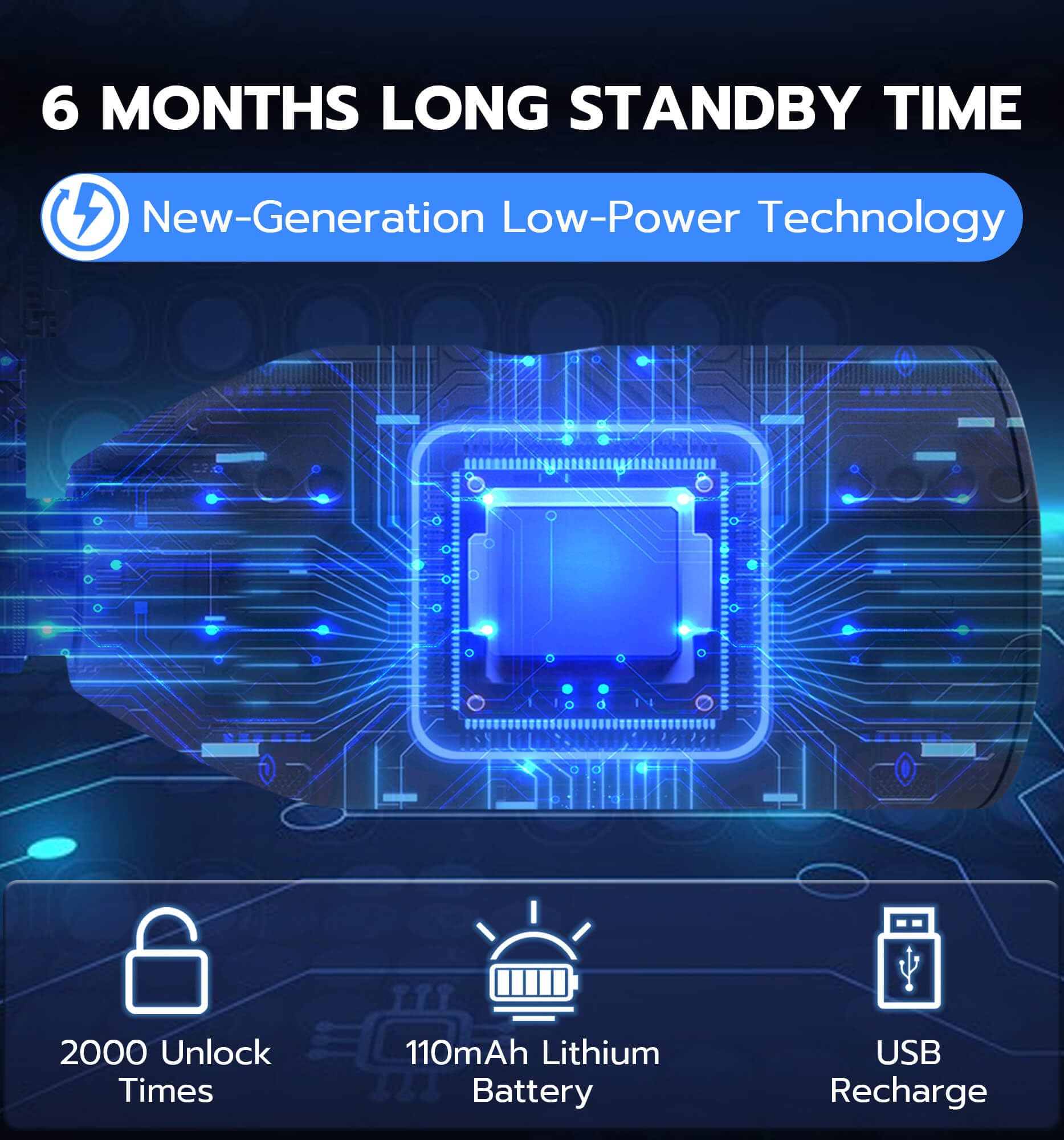 - 🔒【LONG BATTERY LIFE】: This electronic lock has low power consumption and built-in a 110mAh rechargeable lithium battery, which can last standby for 6 months and be unlocked about 2000 times after fully charged, and is equipped with a USB cable for charging.