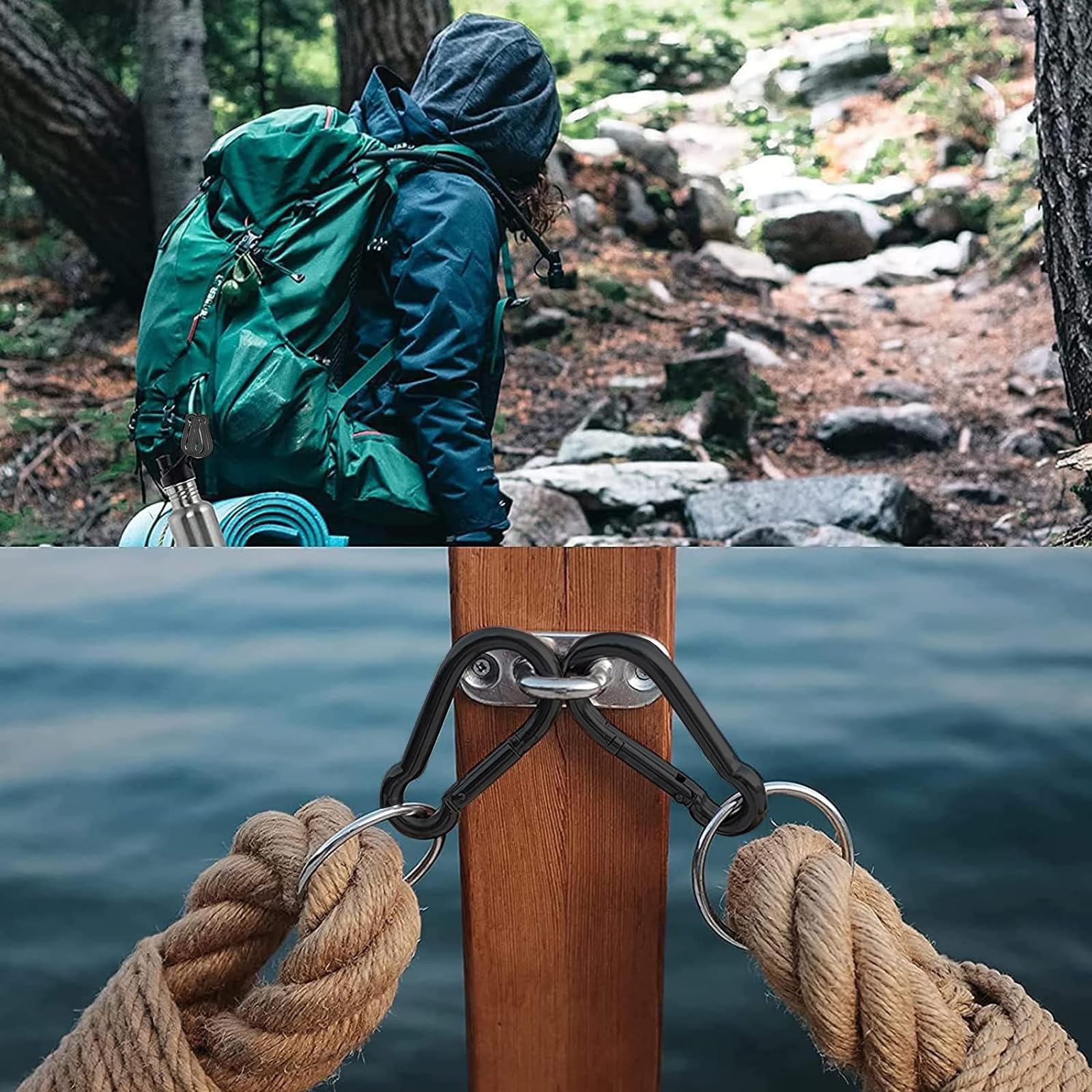 - Versatile and Useful Black Snap Hooks Carabiner: Snap hook has a wide range of applications, and you can use clips to wall tether for exercising, secure items to a kayak, anchor the attachment point for tent, connect shade sails, set up home gym and so on; In addition, 3.2 inch carabiner clips can be used for flag poles, boating, fishing, hiking, camping, fitness, backpack, chains, ropes, pet; Not for climbing