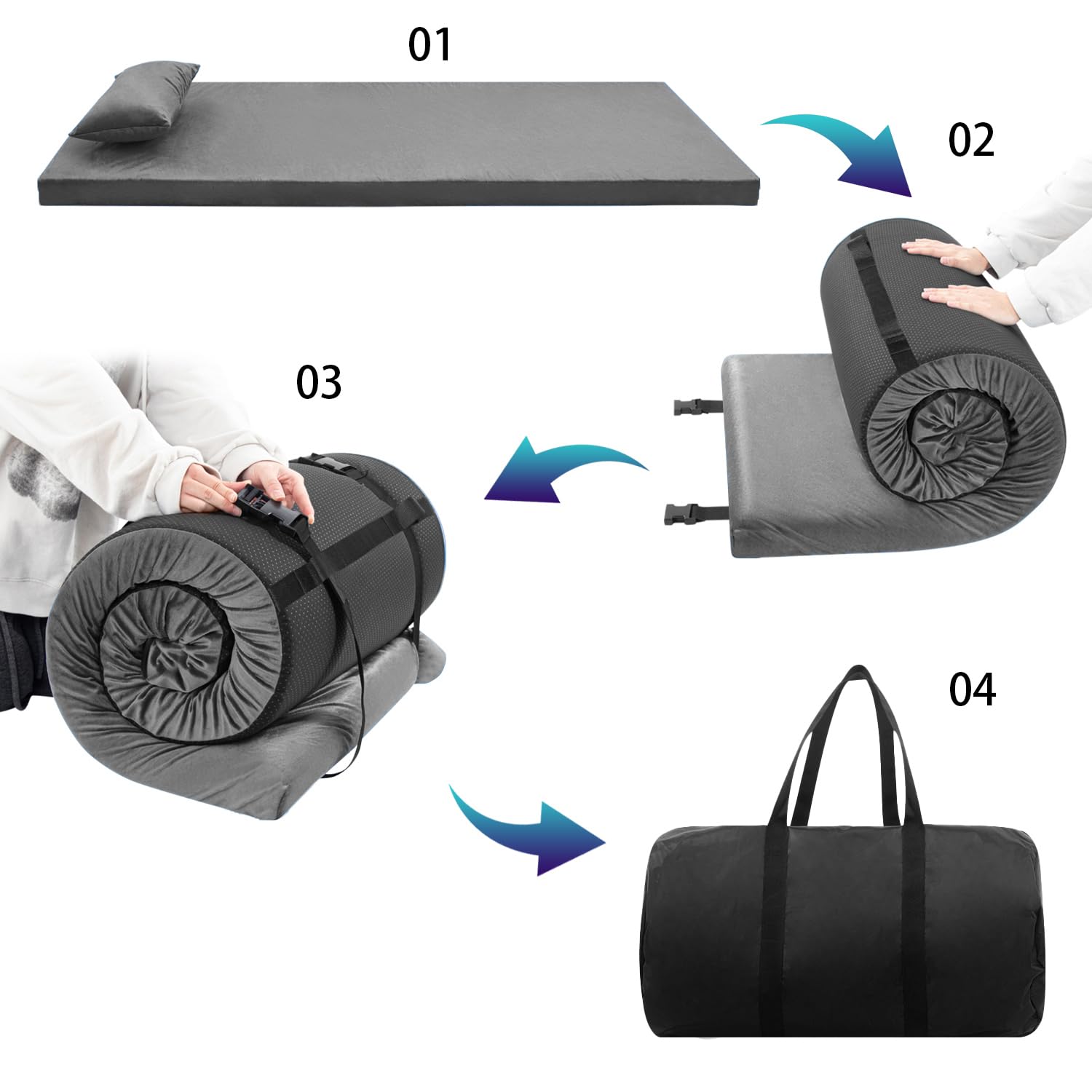 Aodisman 3 Inch Thick Memory Foam Sleeping Pad Camping Mattress,Portable Roll up Mattress-Car/Tent/Cot/Floor,Comfortable Sleeping Mats for Guests Adult Sleepover