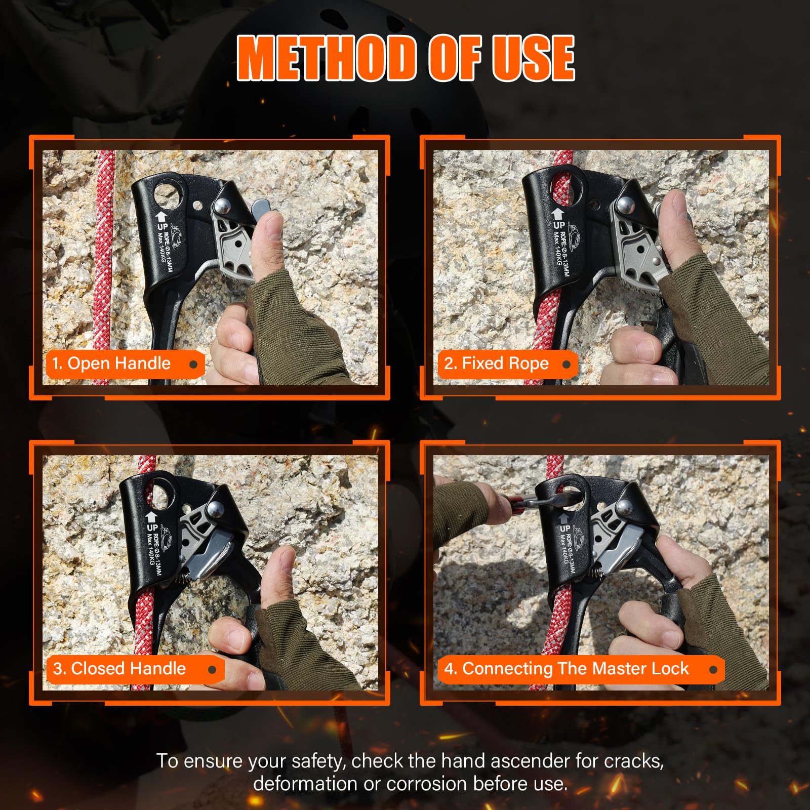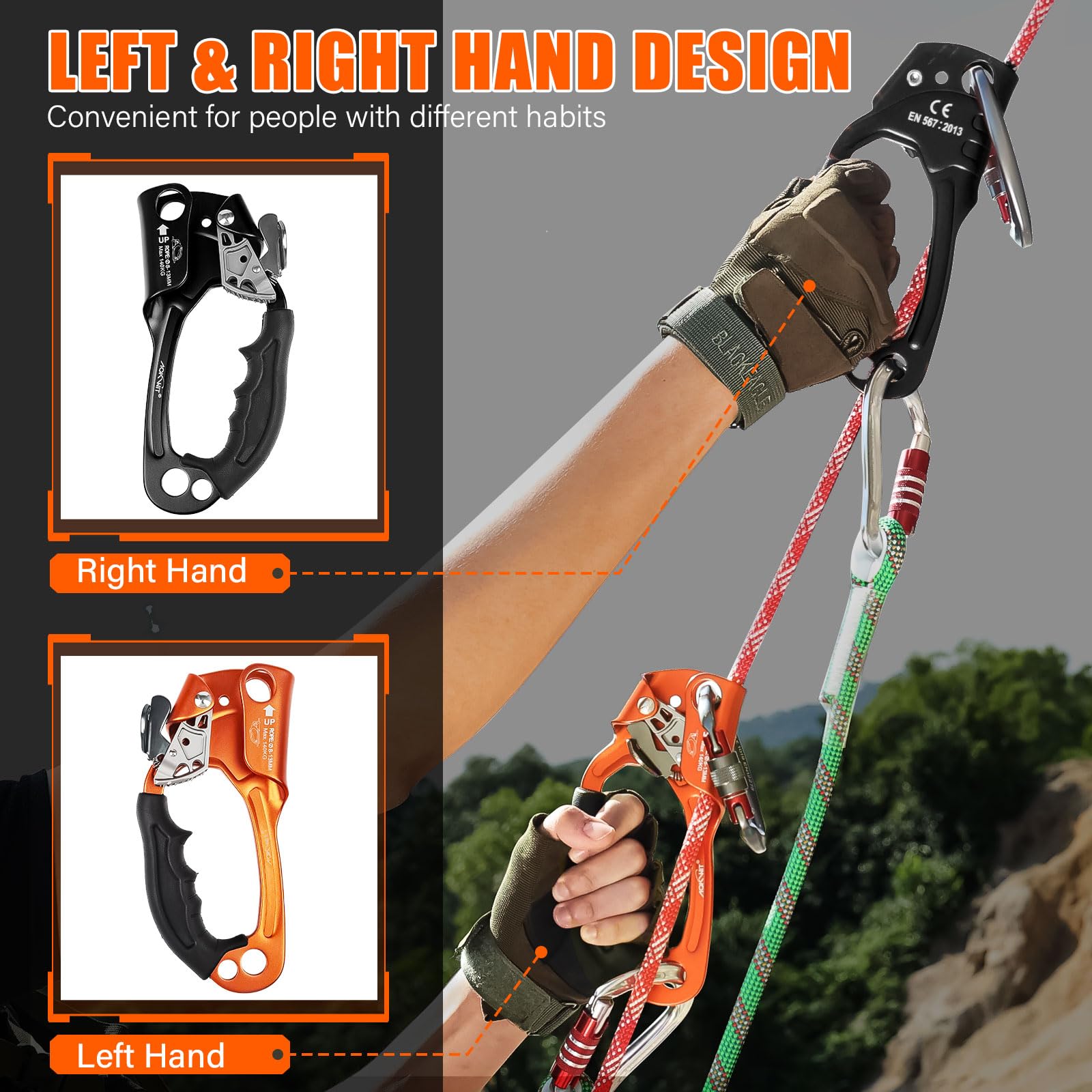 - 【Superior Quality】AOKWIT hand ascender is made of high-strength aluminum-magnesium alloy, with high strength, light weight, easy to carry and corrosion resistance. Left-handed and right-handed design is convenient for people with different habits.