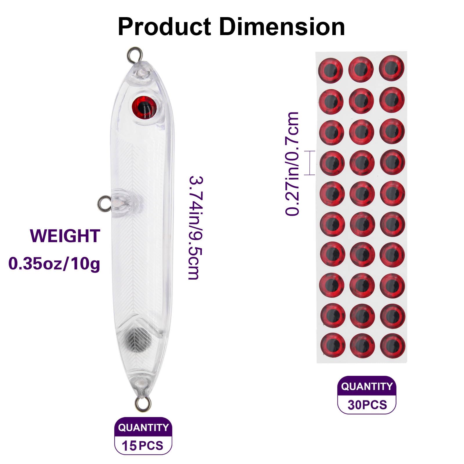 - Construction: Made from durable and rust-resistant plastic, our clear fishing blanks lures are designed to last. The airtight and non-leakage design ensures that the lures maintain their integrity even after multiple uses