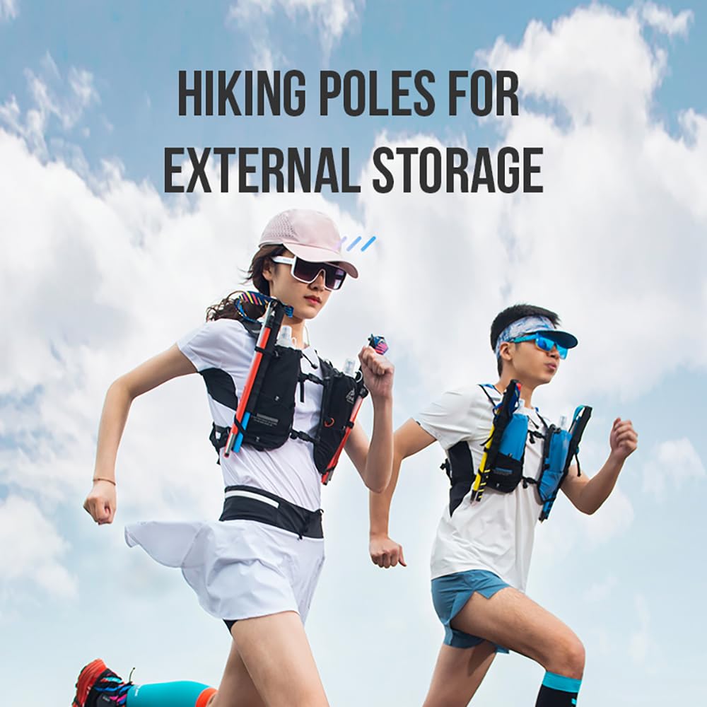 - 【Thoughtful Storage Details】Adjustable cords on the back of the hydration pack add extra expansion room for your light jackets. YKK zippered pocket protects your phone. The trekking pole has an external hanging design and can be hung on your chest when the trekking pole is not in use.