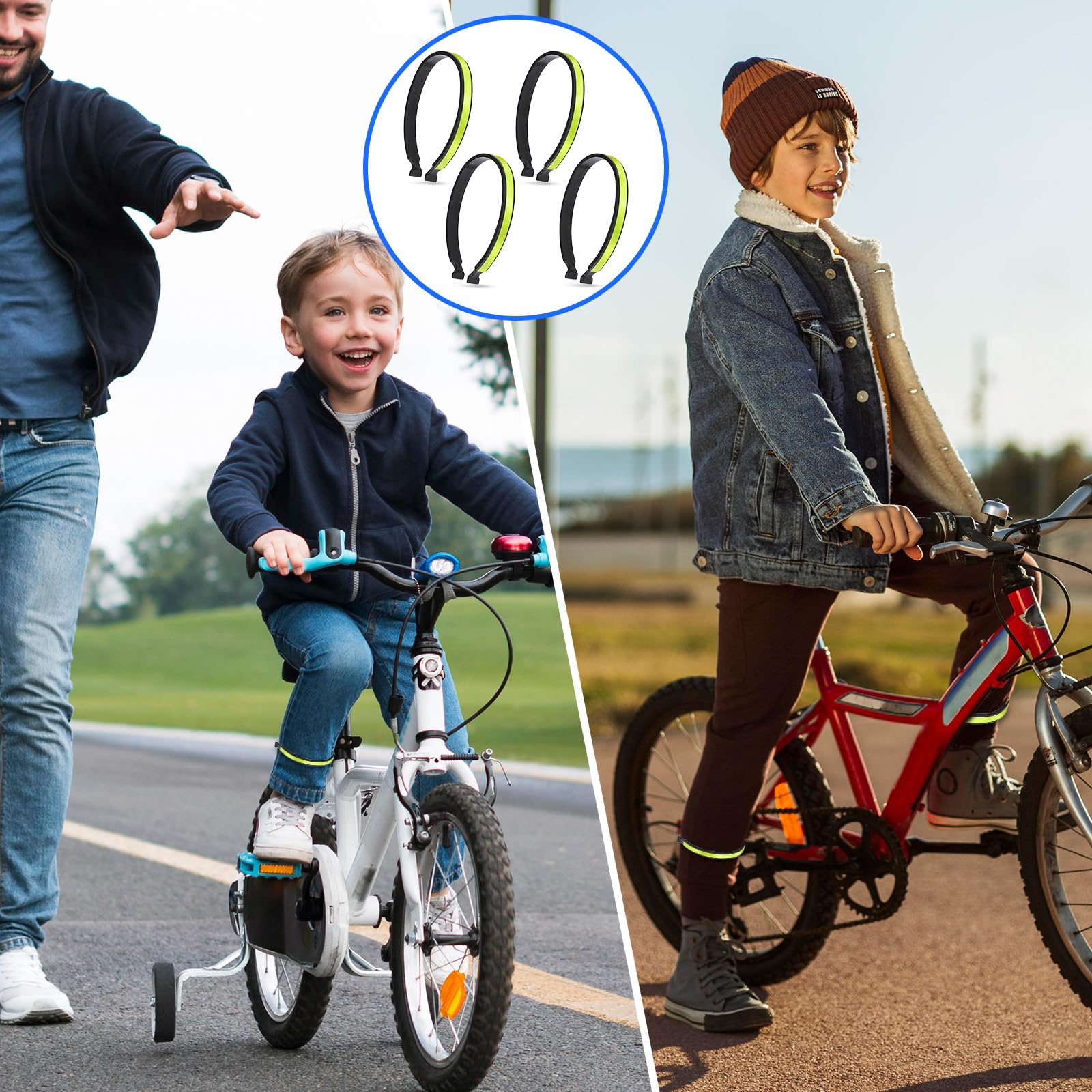 - High-Quality Materials: These cycling pant bands are made of premium elastic ABS and PVC-coated reflective strips, durable and reliable, not easy to break, have a certain elasticity, and can be reused. Simply slide it slightly above your ankle to maintain position, this trouser clip will keep you secure, and offer peace of mind and comfort.
