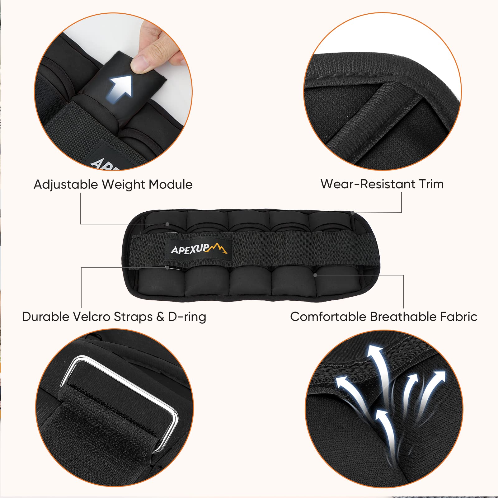 - [PREMIUM QUALITY] APEXUP adjustable ankle strength training weights are filled with iron sand to ensure a compact profile. The sleeve material of the ankle weights for men is soft and breathable, which will give you maximum comfort during workout.