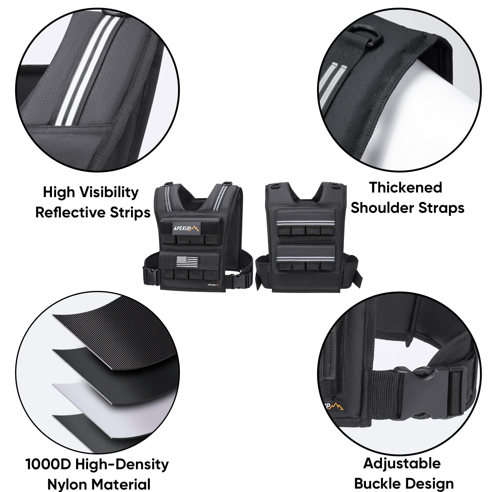 APEXUP Adjustable Weighted Vest Men 20lbs/30lbs/40lbs Weights with Reflective Stripe, Weight Vest Woman Workout Vest for Strength Training Running Walking (40 lbs)