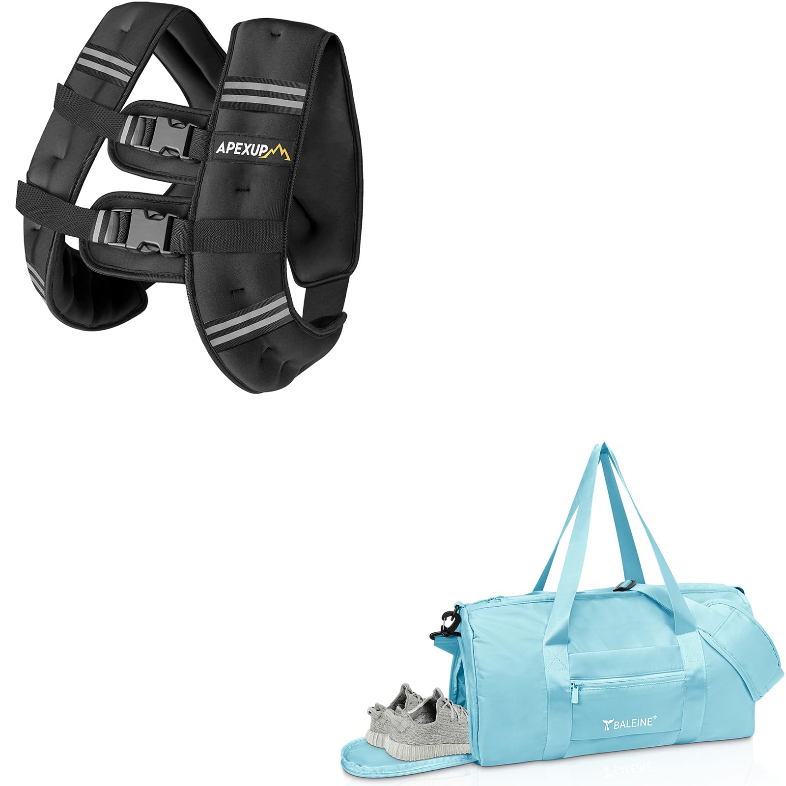 APEXUP Weighted Vest 15lbs + Gym Duffle Bag