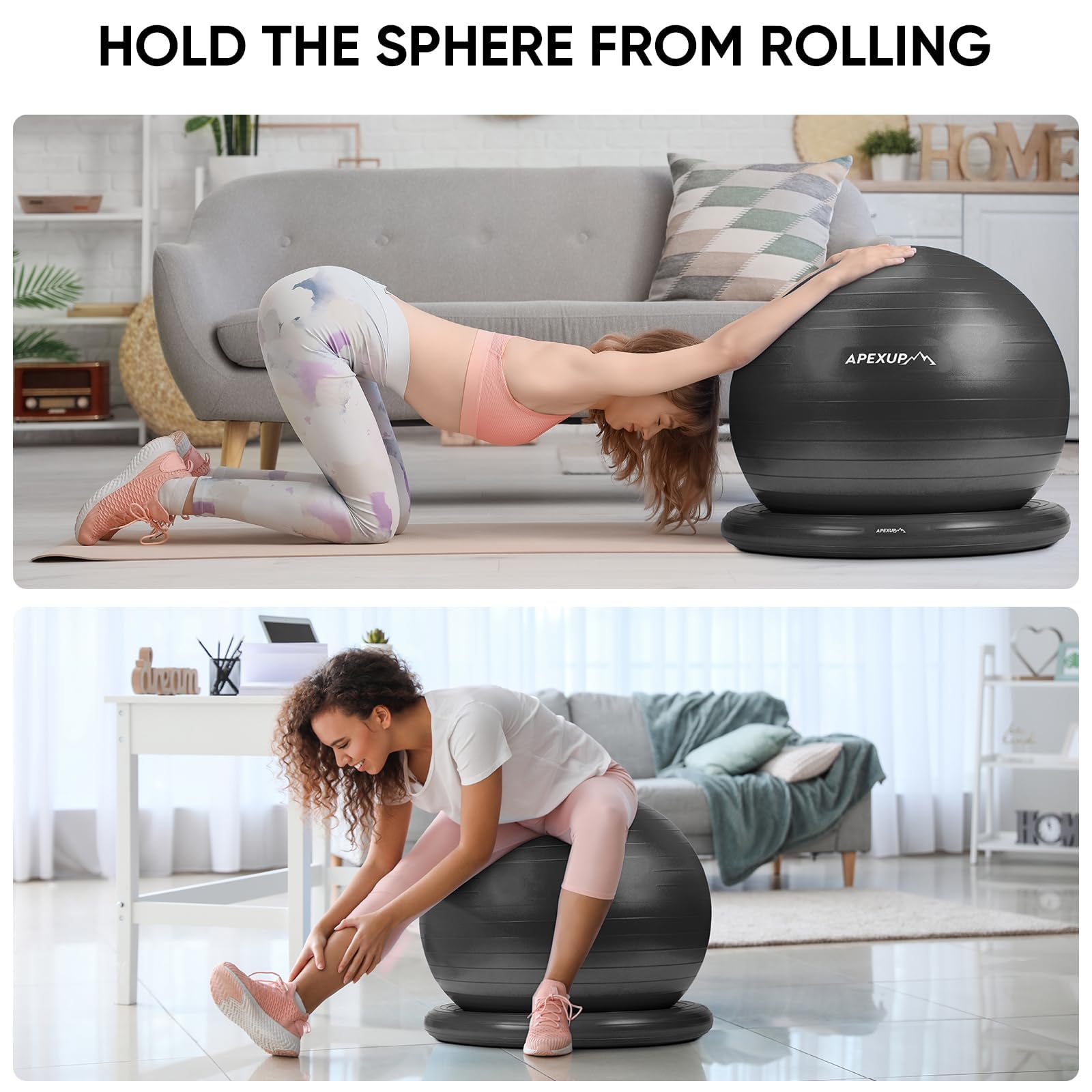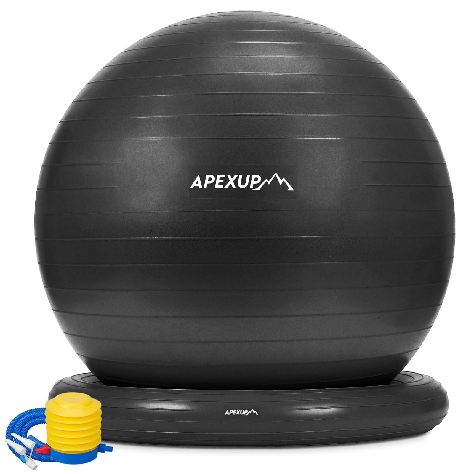 - High Load Bearing: APEXUP Exercise Ball is crafted from high-quality PVC material and meets strict safety standards; It is non-toxic, odorless, and free from harmful heavy metals; The balance ball and base feature advanced foaming technology and can support a maximum weight of 660 pounds