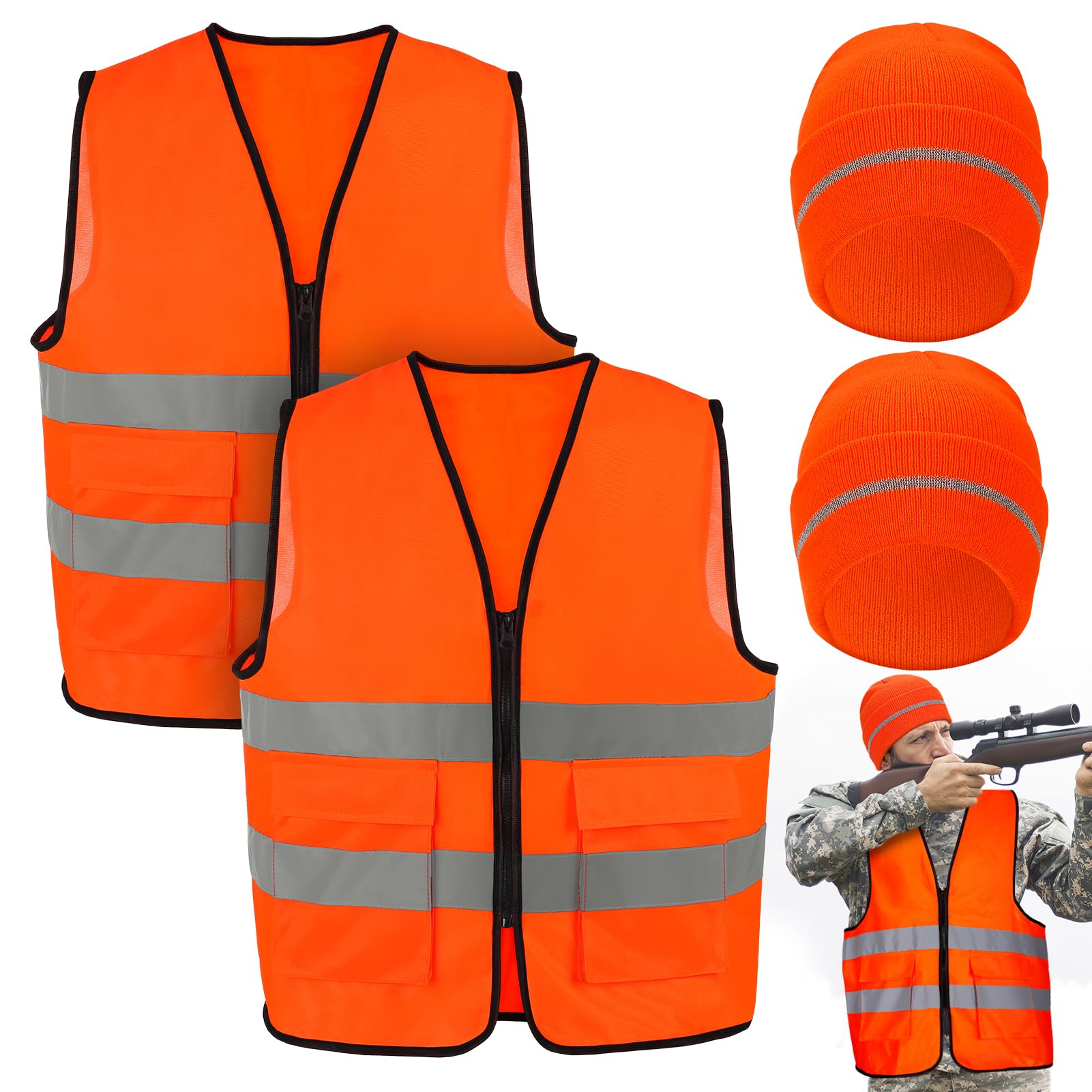 - SET CONTENT: The set includes 2 blaze orange hunting vests and 2 beanies. The vest is designed with a loose fit to allow layering, especially suitable for cold weather, offering extra protection for hunters. This set ensures a safer and more enjoyable outdoor sport during your hunting activities.