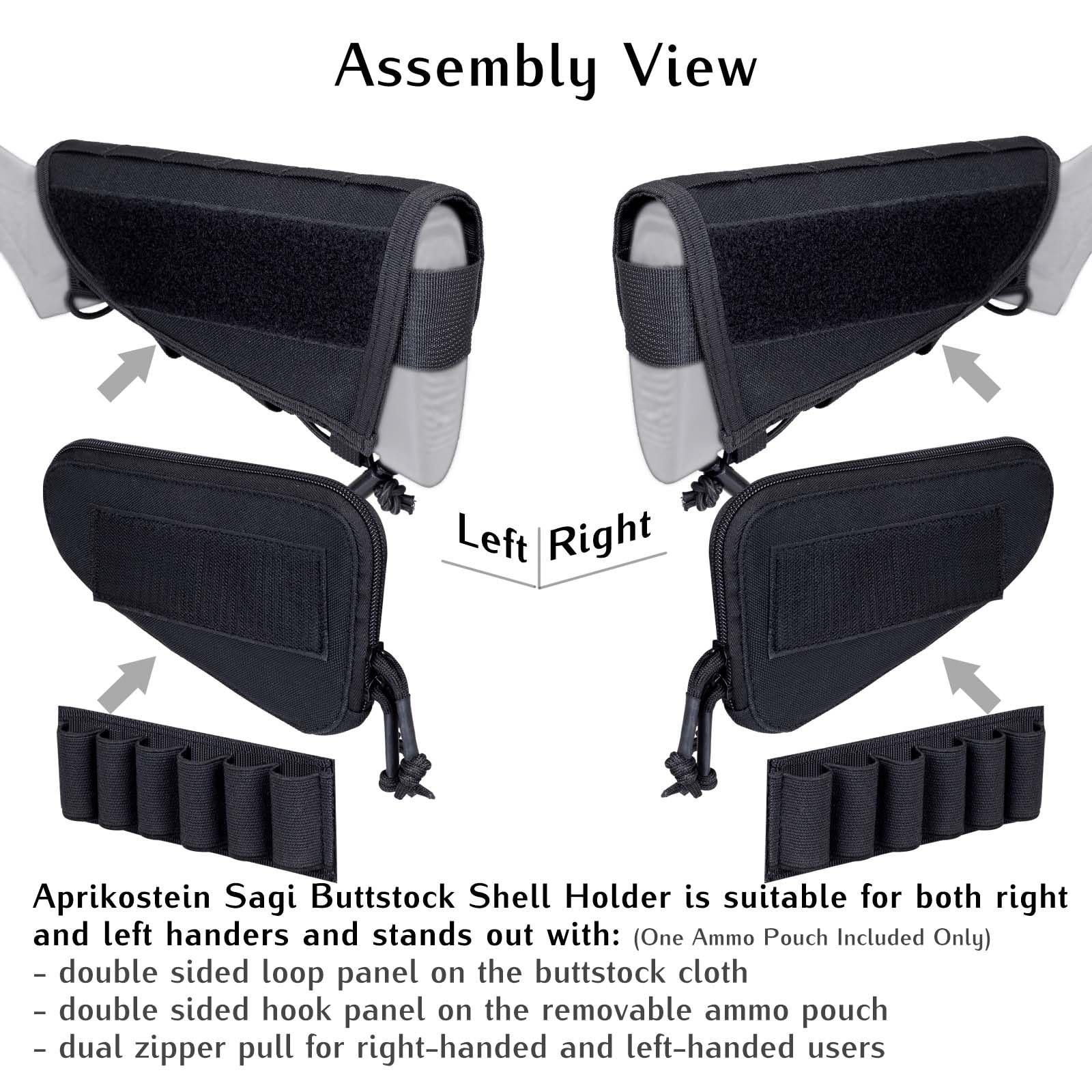 Aprikostein Buttstock Shotgun Shell Holder for Ammo 12 Gauge 20Ga 30-06 30-30 45-70 7.62 410 Left Right Handed Ambidextrous Rifle Stock Pouch Cheek Rest Shotshell Carrier