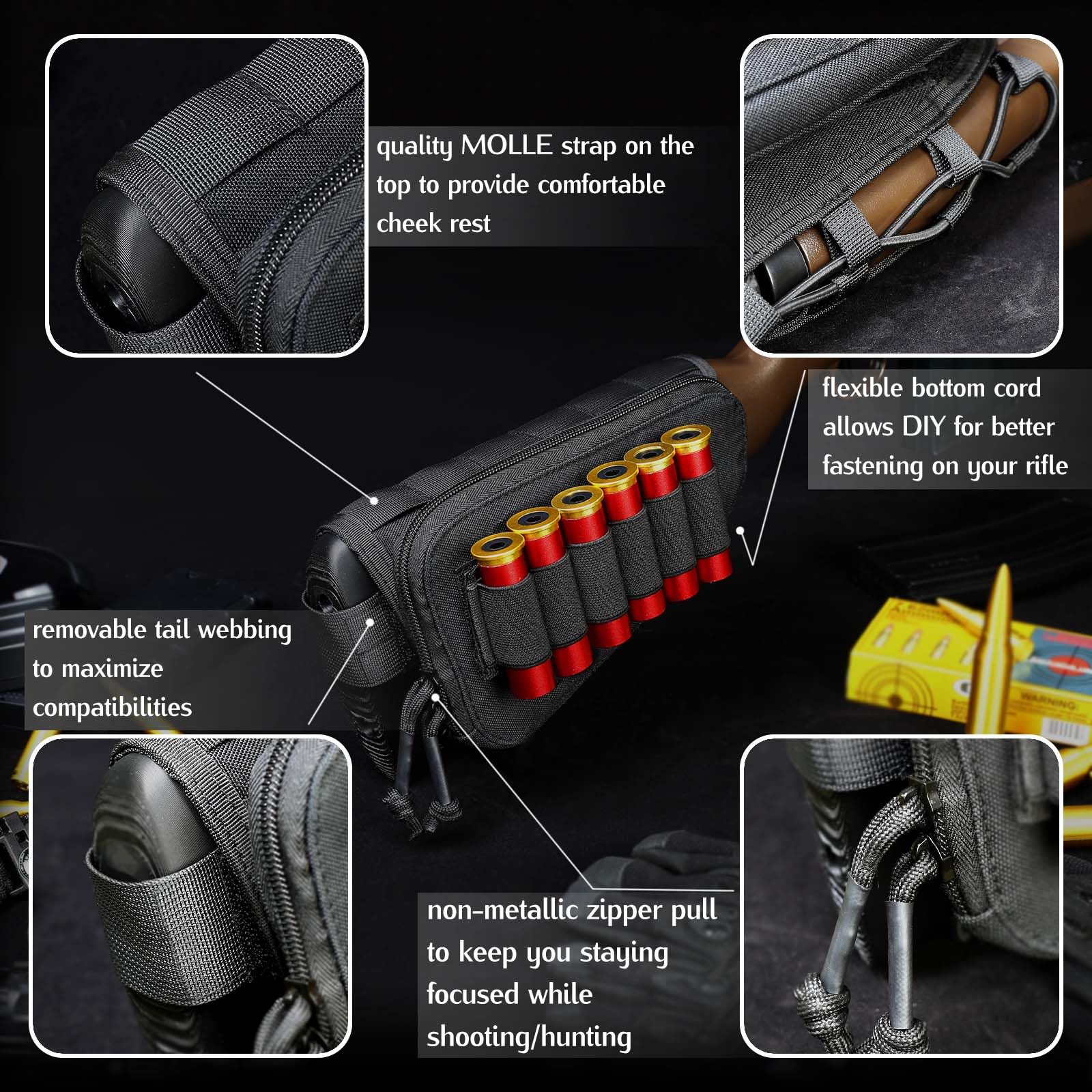 - 【600D Nylon & Adjustable Cord & Bottom Strap】in any tactical situation, the cheek pad will provide excellent flexibility and security with fastenable cord and adjustable bottom strap, made of high quality 600D nylon, thicker elastic cord, A-level hook and loop and unified color, making it a great tactics and survival gun accessories