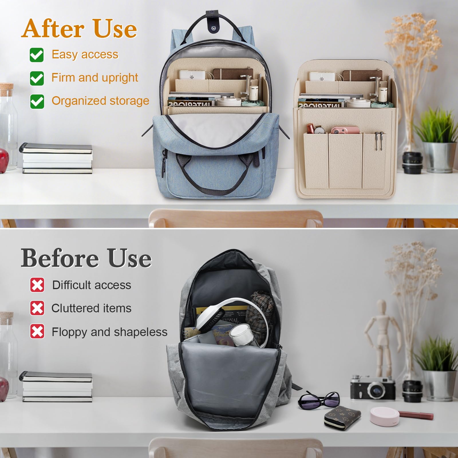 - Made of superior highly durable felt, soft and pliable ,lightweight and well constructed backpack insert Organizer, hold your backpack up and make your love to carry it our again!