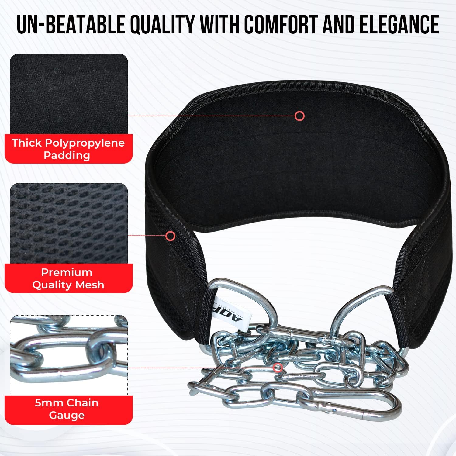 - Built for Durability & Performance: The AQF chain belt for weight lifting is built from heavy-duty polypropylene with reinforced stitching, designed to handle even the most intense training. Whether you’re powering through pull-ups, dips, or squats, this gym dip belt with chain will stand up to your toughest training. It’s the ultimate gym companion, built to support your progress for years to come.