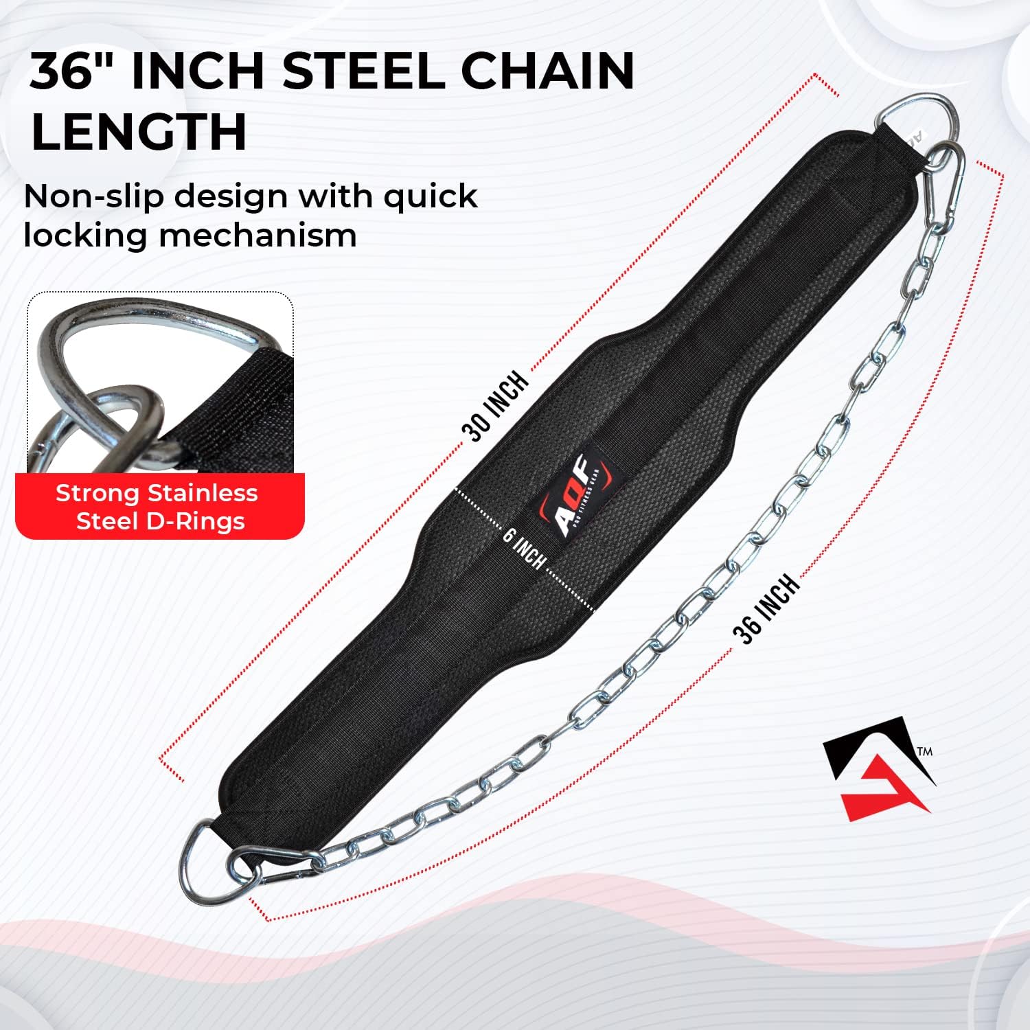 AQF Weightlifting Dip Belt with 36" Steel Chain - Neoprene Padded Support for Powerlifting & Bodybuilding