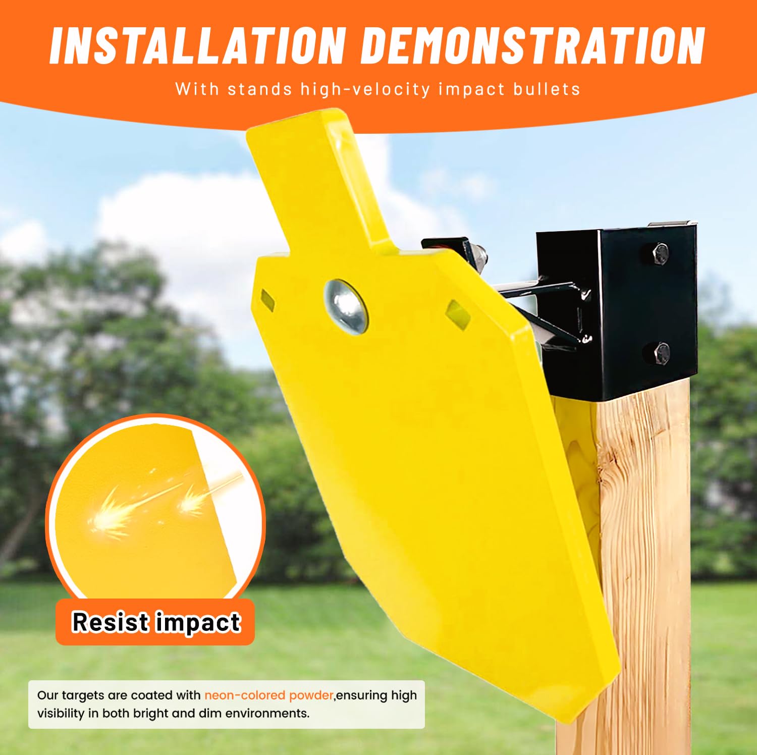 - 3.High-Visibility Fluorescent Yellow Finish: Each metal target for shooting is coated in a fluorescent yellow color for easy visibility from afar. This bold color enhances target clarity, so you can track your shots with ease, even in varying light conditions. With this high-contrast finish, aiming becomes simpler, and shot placement accuracy improves, reducing the time between shots and allowing more focus on technique improvement.