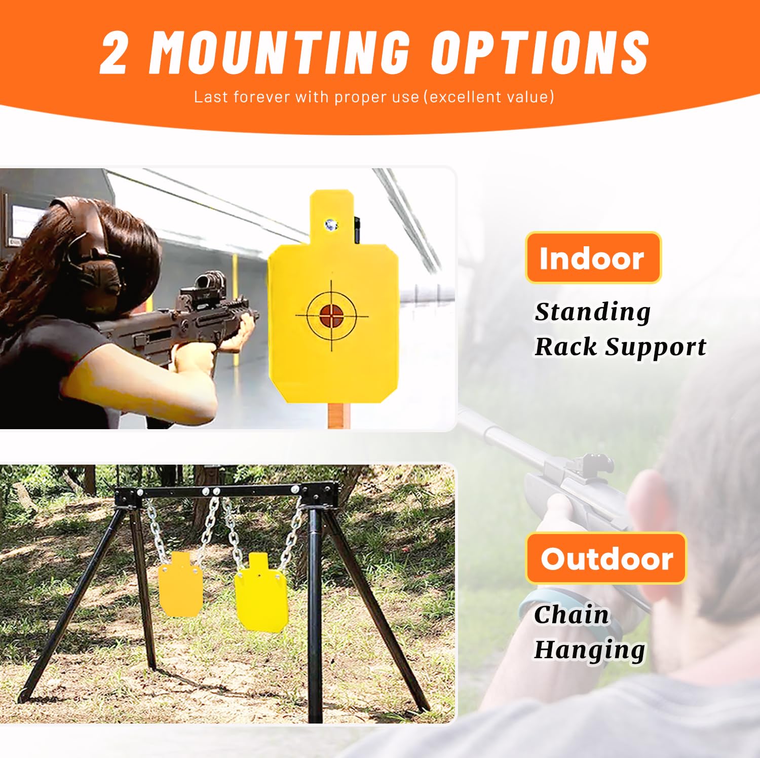 - 4.Compatible with Different Mounting Systems: Designed to accommodate diverse mounting preferences, our steel targets for shooting can be easily set up on multiple stand types, giving you the flexibility to practice on both stationary and swinging targets. The pre-drilled holes make setup a breeze, ensuring stable attachment while enhancing shooting dynamics, so you can create a realistic shooting experience suited to personal or competitive training.