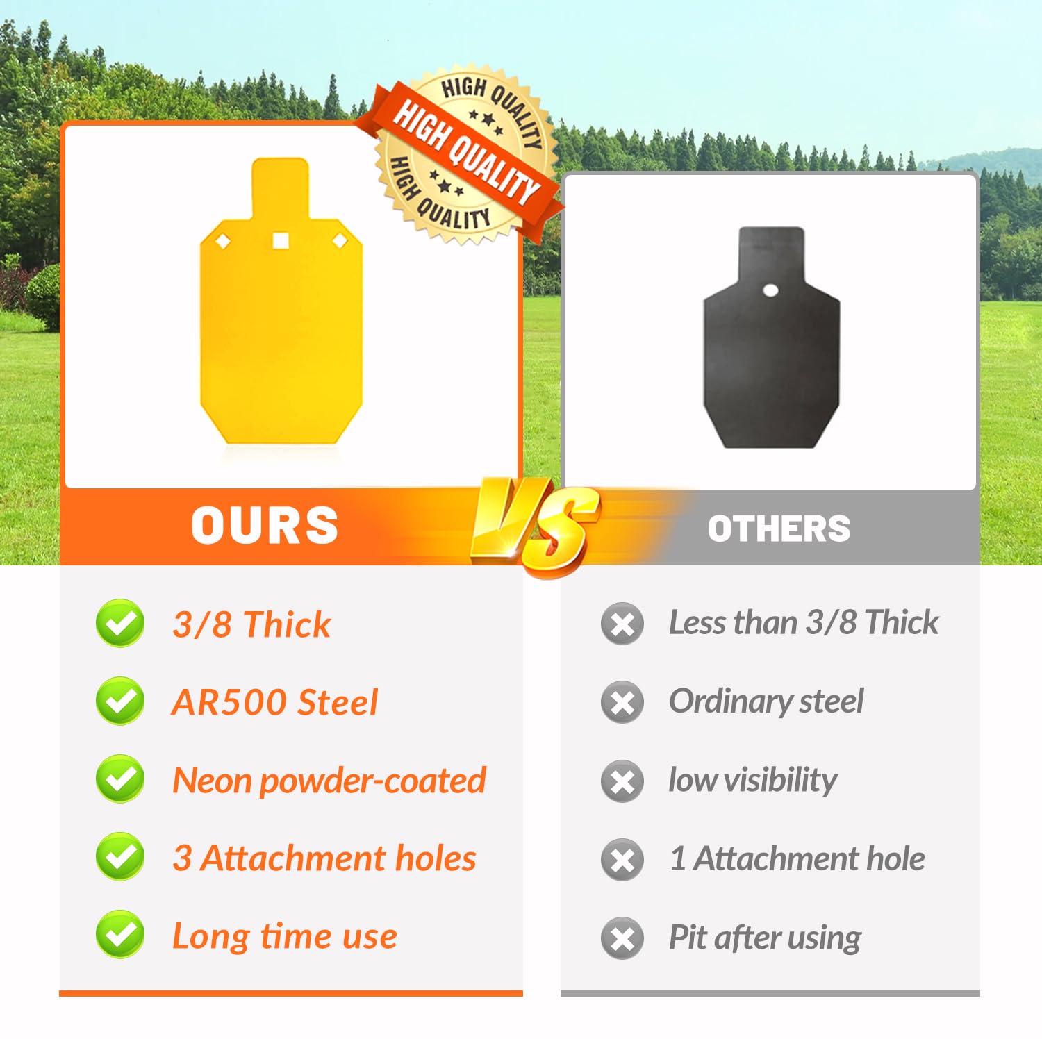 - 1.Ultra-Durable AR500 Steel: Crafted from high-quality, resilient AR500 steel, our shooting targets withstand the most intense range training. Built to handle impacts from a wide range of calibers without compromising performance, these metal shooting targets are ideal for both novice shooters and seasoned marksmen. Designed for long-lasting use, our AR500 shooting targets allow you to get the most out of every training session with minimal wear and tear.