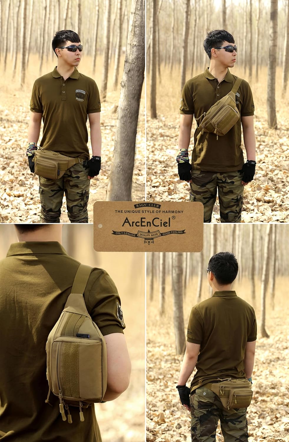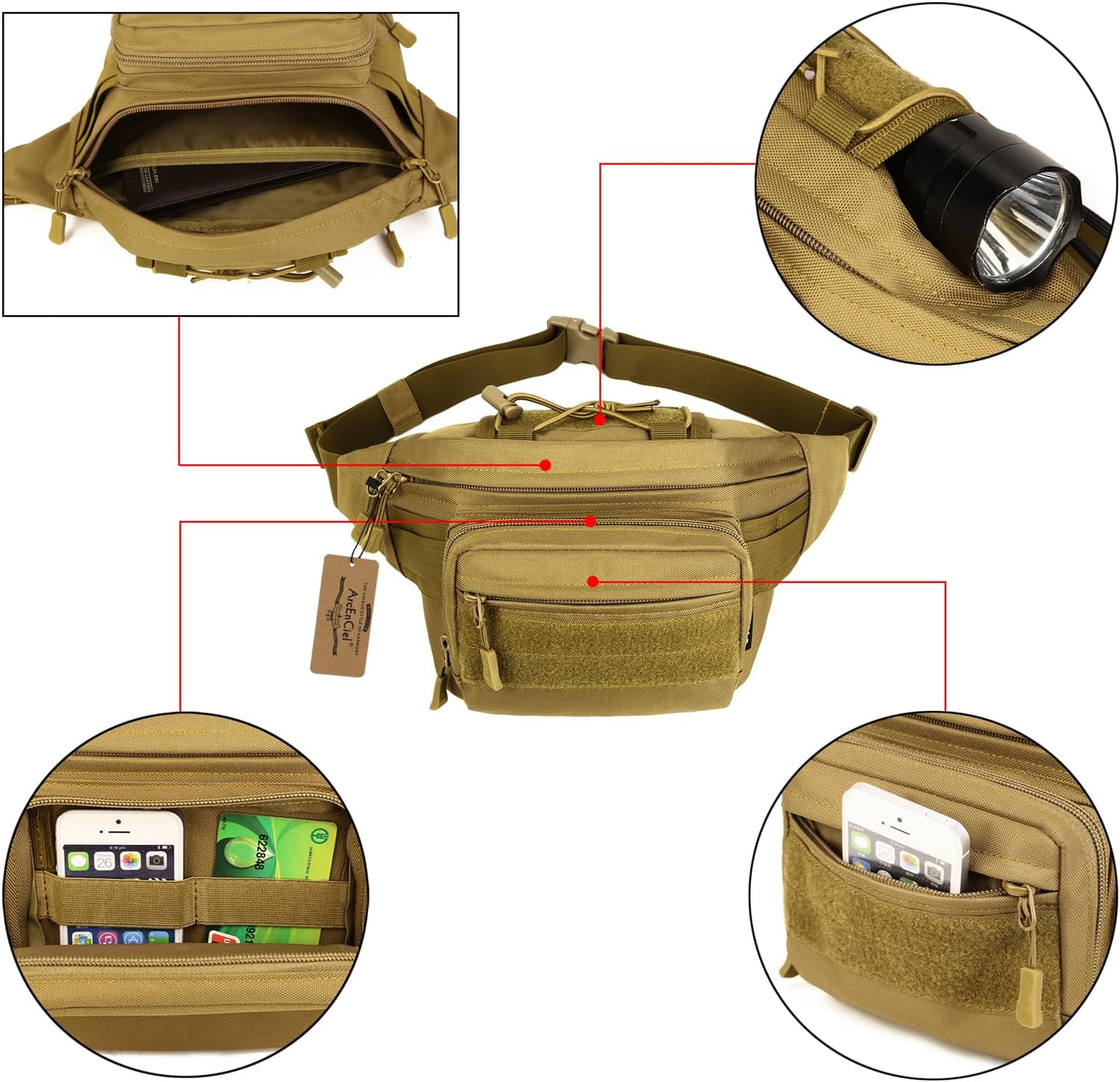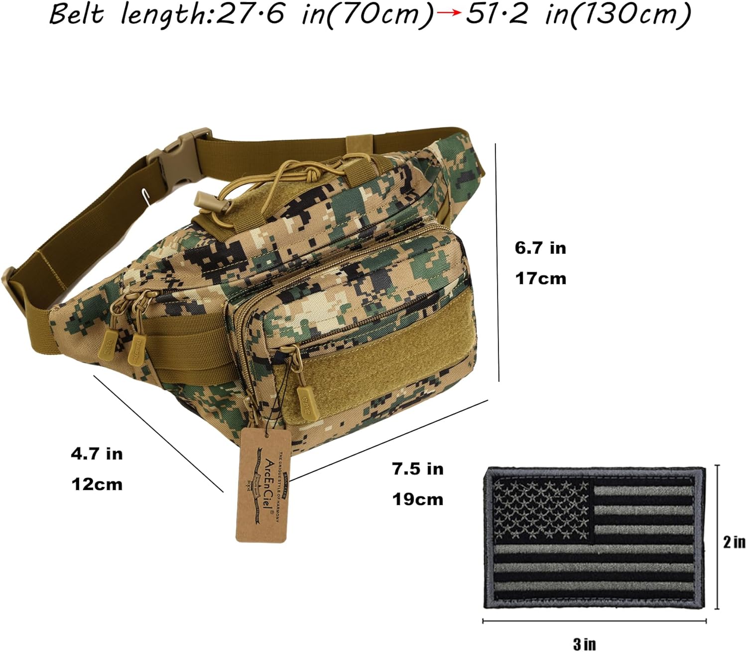 ArcEnCiel Tactical Fanny Pack for Men Waist Bag Military Hip Belt Outdoor Hiking Fishing Bumbag with Patch
