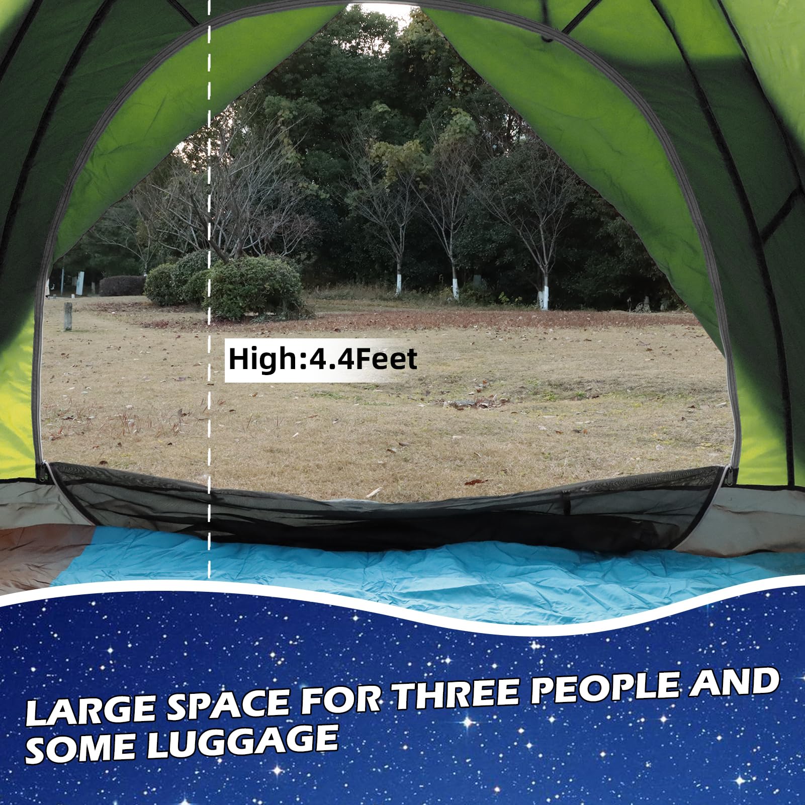- 【Suitable for many people to travel】 2-3 people travel only need to bring a three-person tent is enough, you can reduce the number of items to carry. The tent space is large enough that three adults will not feel crowded in the tent at the same time, and luggage can also be placed in tents.