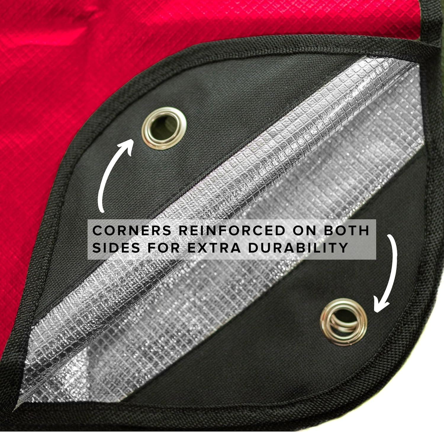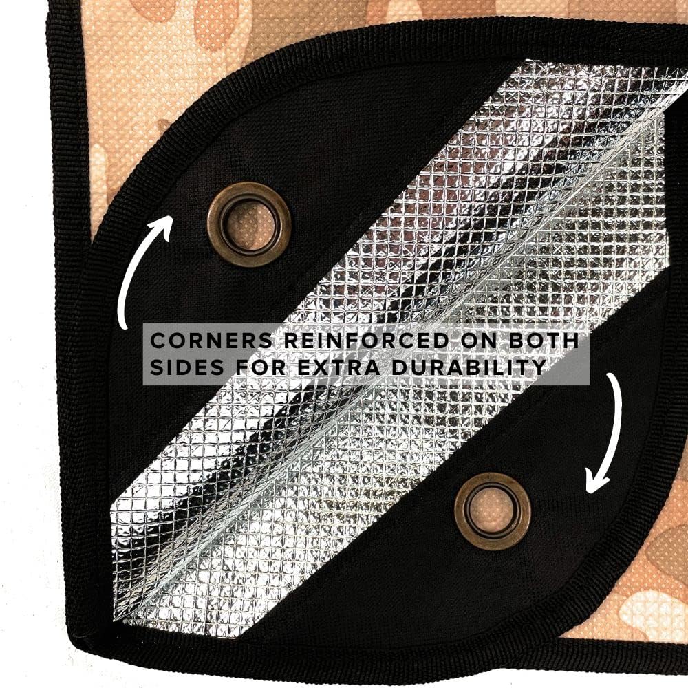- 4 REINFORCED TIE-DOWN GROMMETS: The grommets allow this survival blanket to be hung with ease or secured to reflect/deflect heat, and create a waterproof shelter. We test these grommets constantly and regularly make improvements.