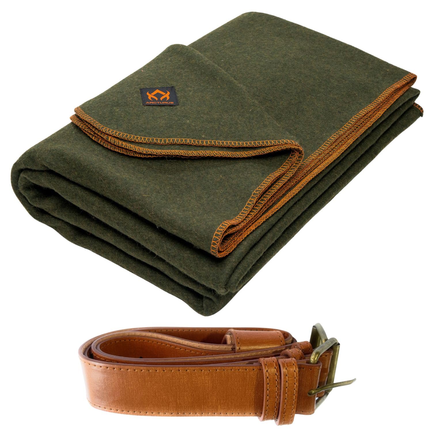 Arcturus Olive Green Wool Blanket and Carry Straps Bundle
